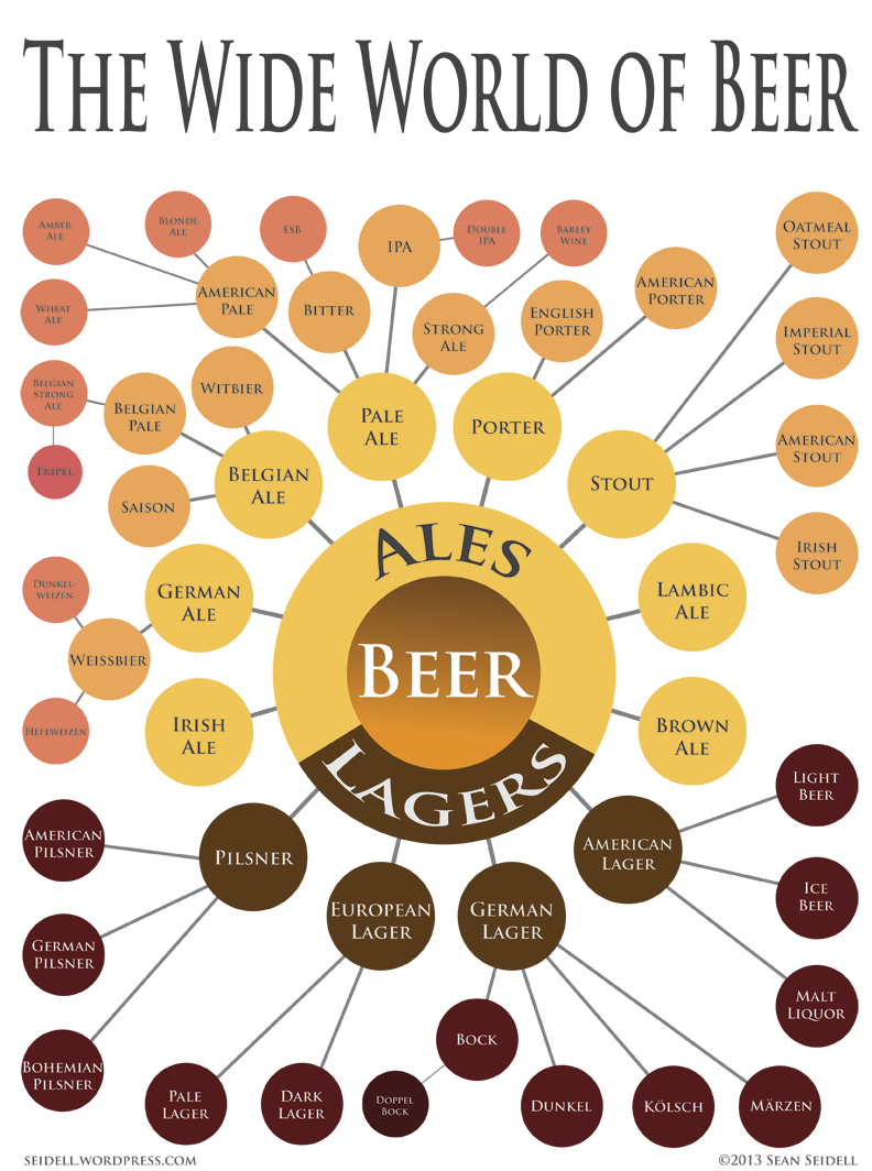 Bia có bốn dòng phổ biến: Ale, Lager, Porter và Stout. Chúng được gom nhóm như vậy dựa vào kiểu nấu (style), hương vị, màu sắc, lịch sử ra đời, cảm giác vòm miệng hay vị cảm (mouthfeel). Riêng Ale là bia có tuổi đời lâu nhất, phổ biến và được uống nhiều nhất trên thế giới. Có thể nói Ale là nguyên thủy, ông tổ của các loại bia.