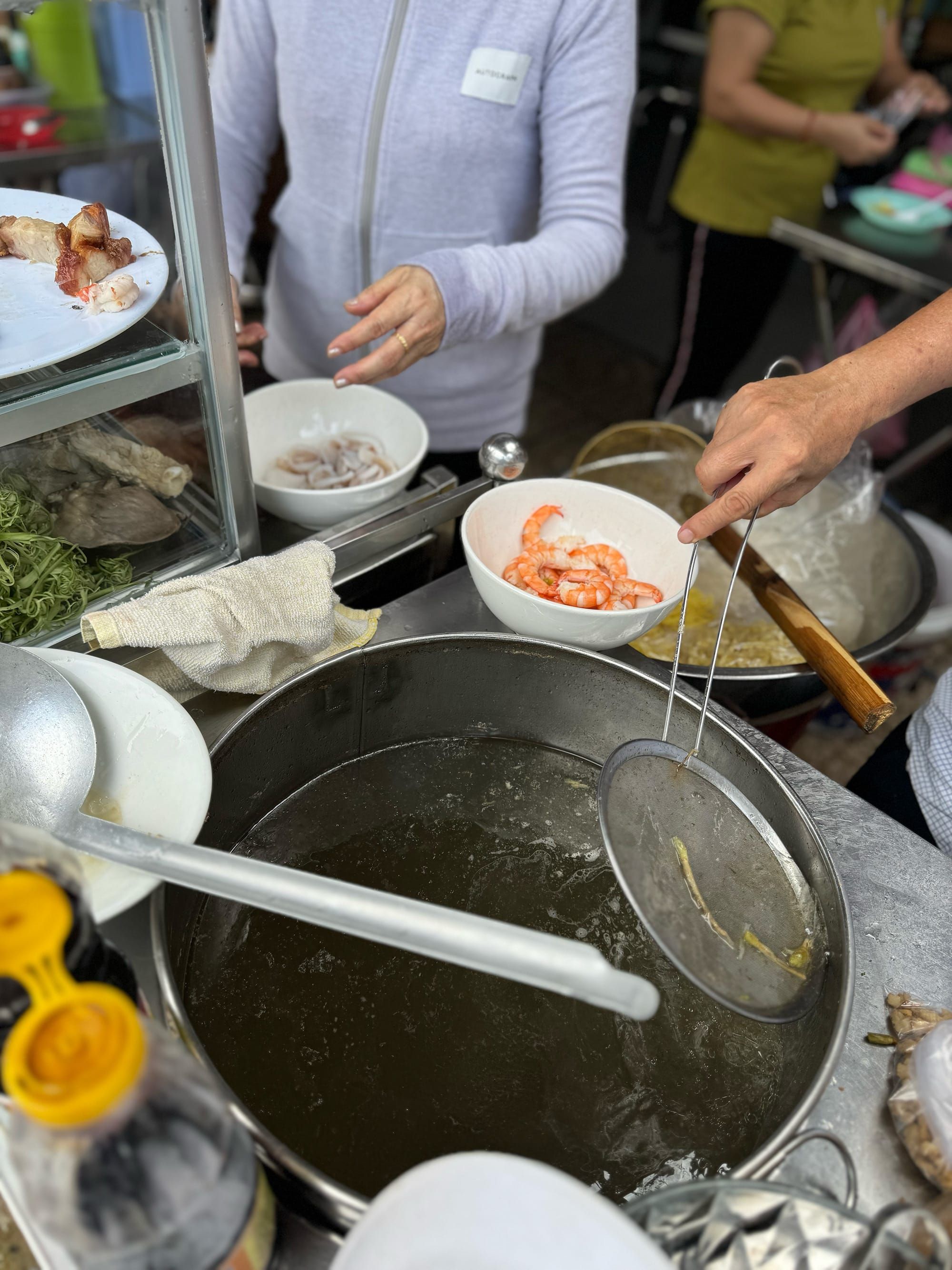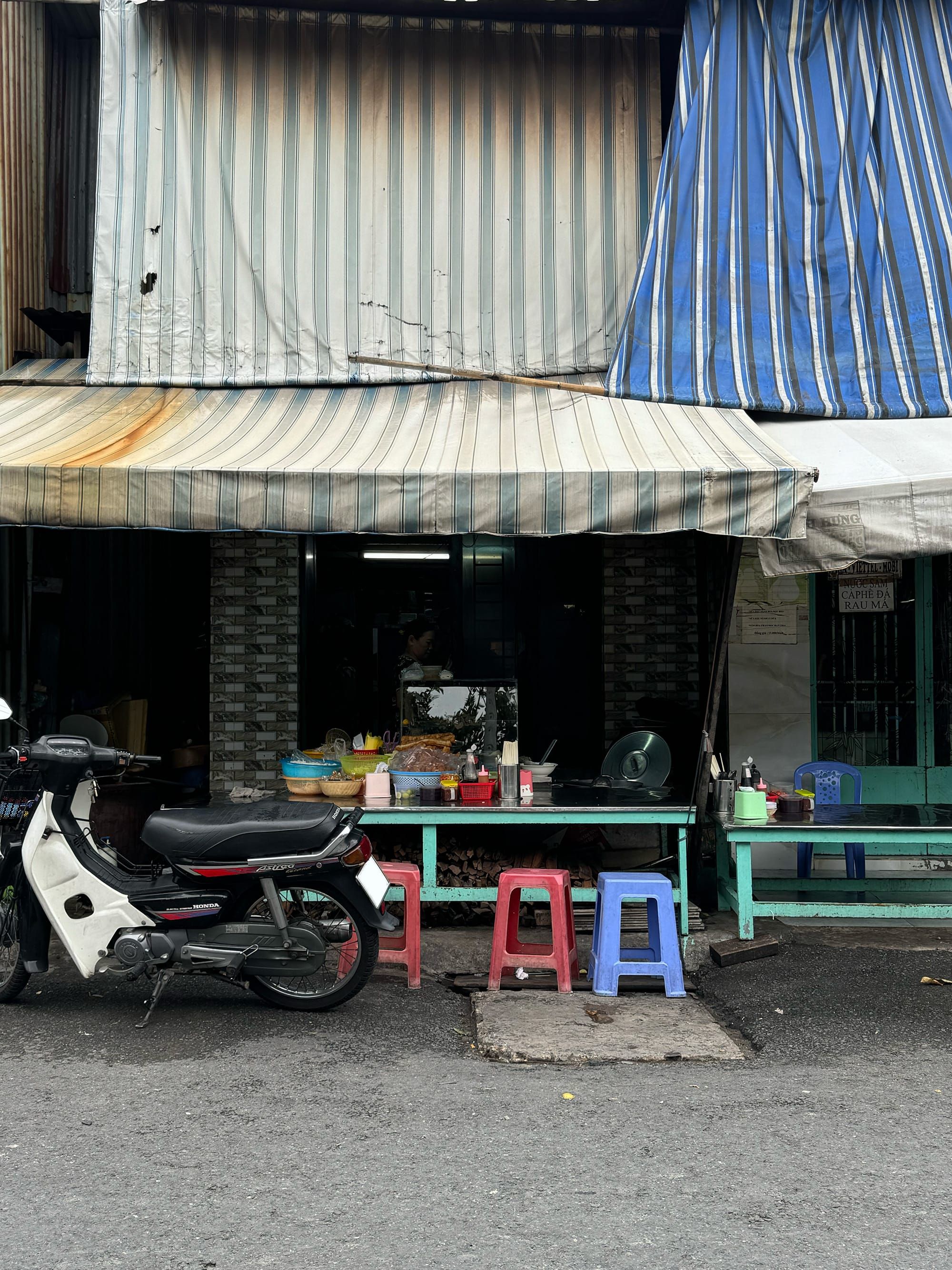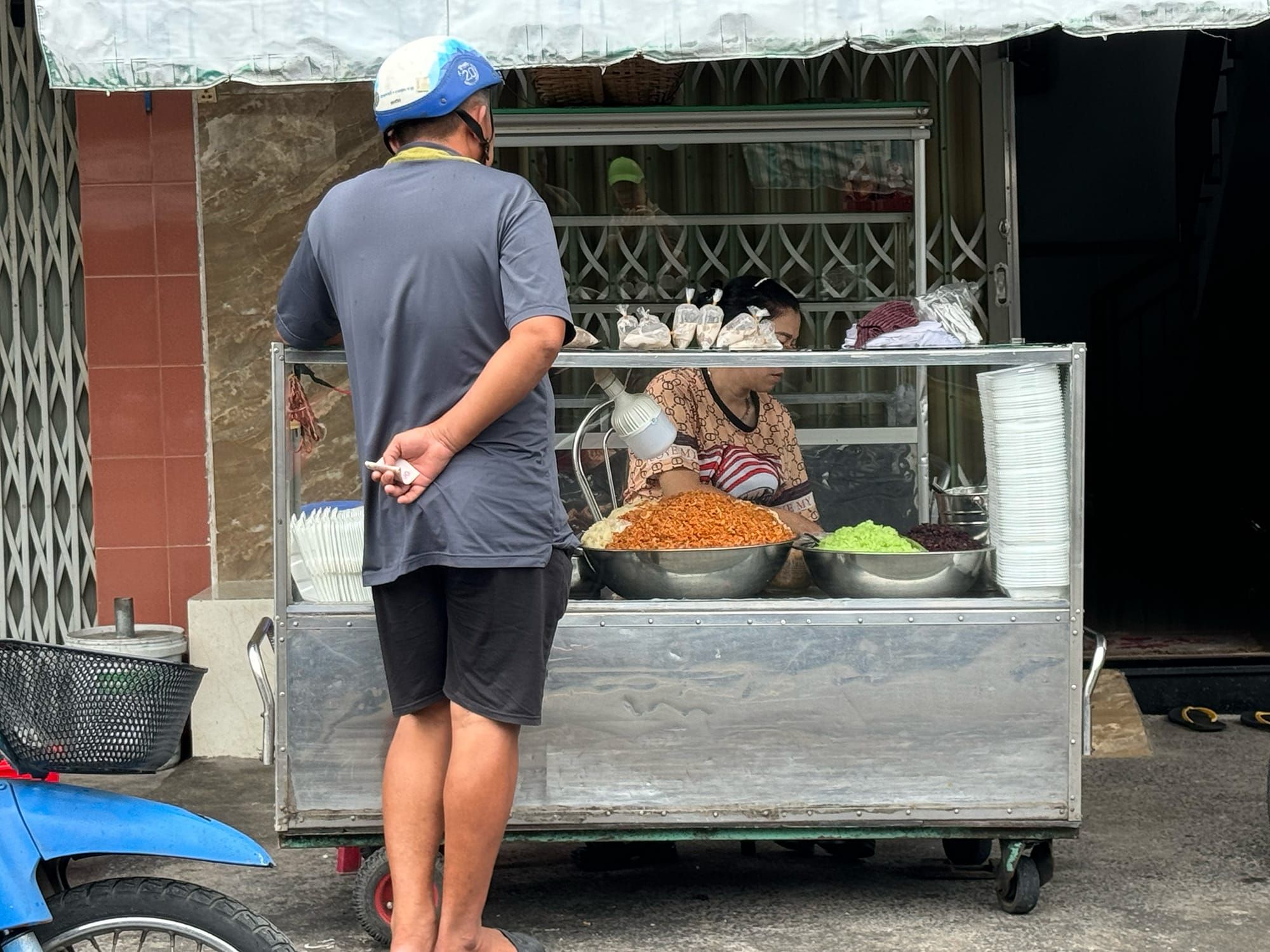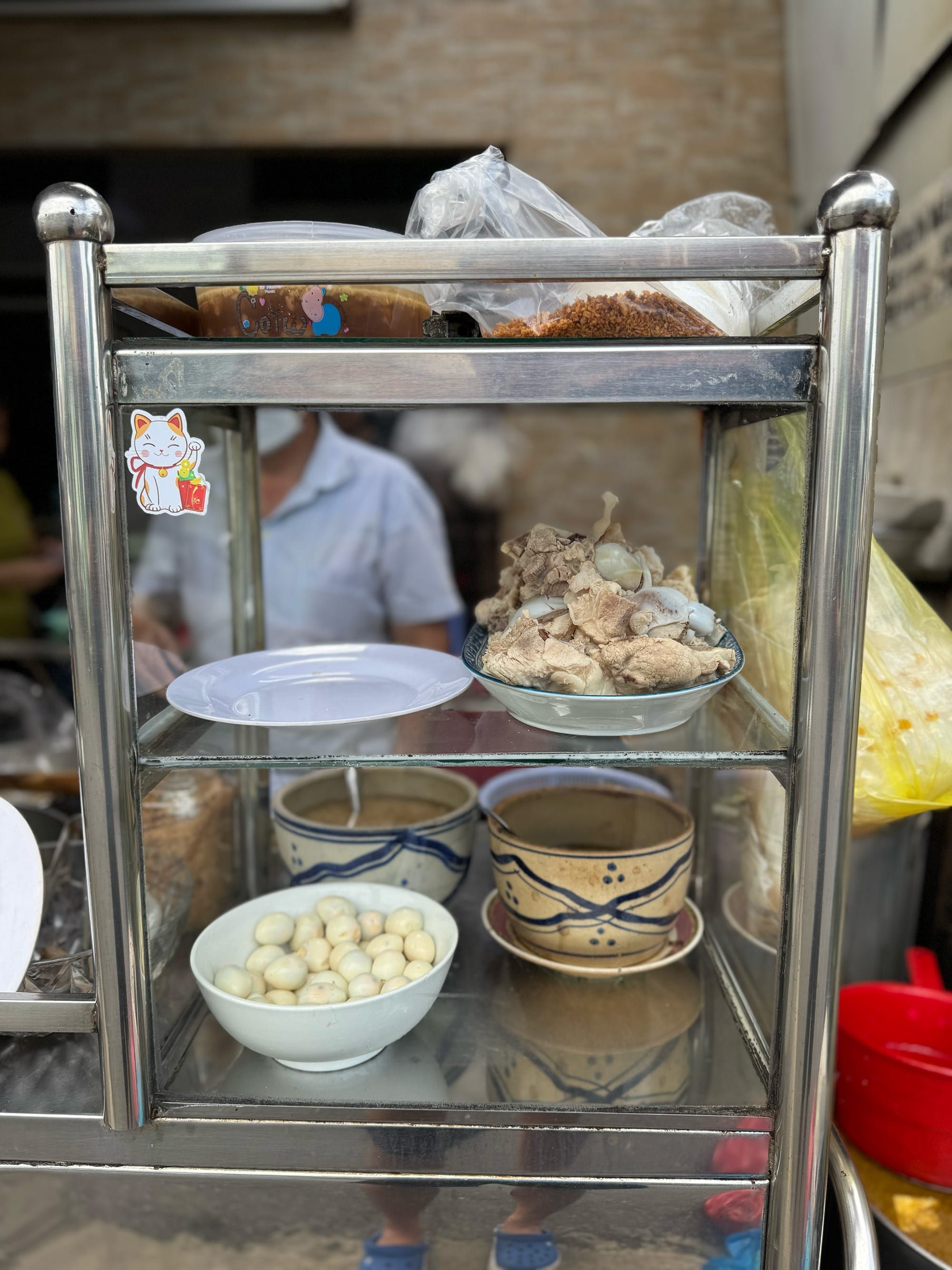 Nhưng điểm nhấn ở cù lao đầu tiên chính là ẩm thực. Một tiểu khu ẩm thực truyền thống phong phú trải dài trong những quán nhỏ đơn sơ giản dị. Mặc dù không được sang trọng hoành tráng như những gì bạn thưởng thức ở trung tâm, nhưng đừng nghi ngờ chất lượng ở đây. Nguyên liệu và hương vị đúng như thập niên 90, chính gốc miền Nam, điển hình như quán bún mắm ở số 66 đường Hoài Thanh này: