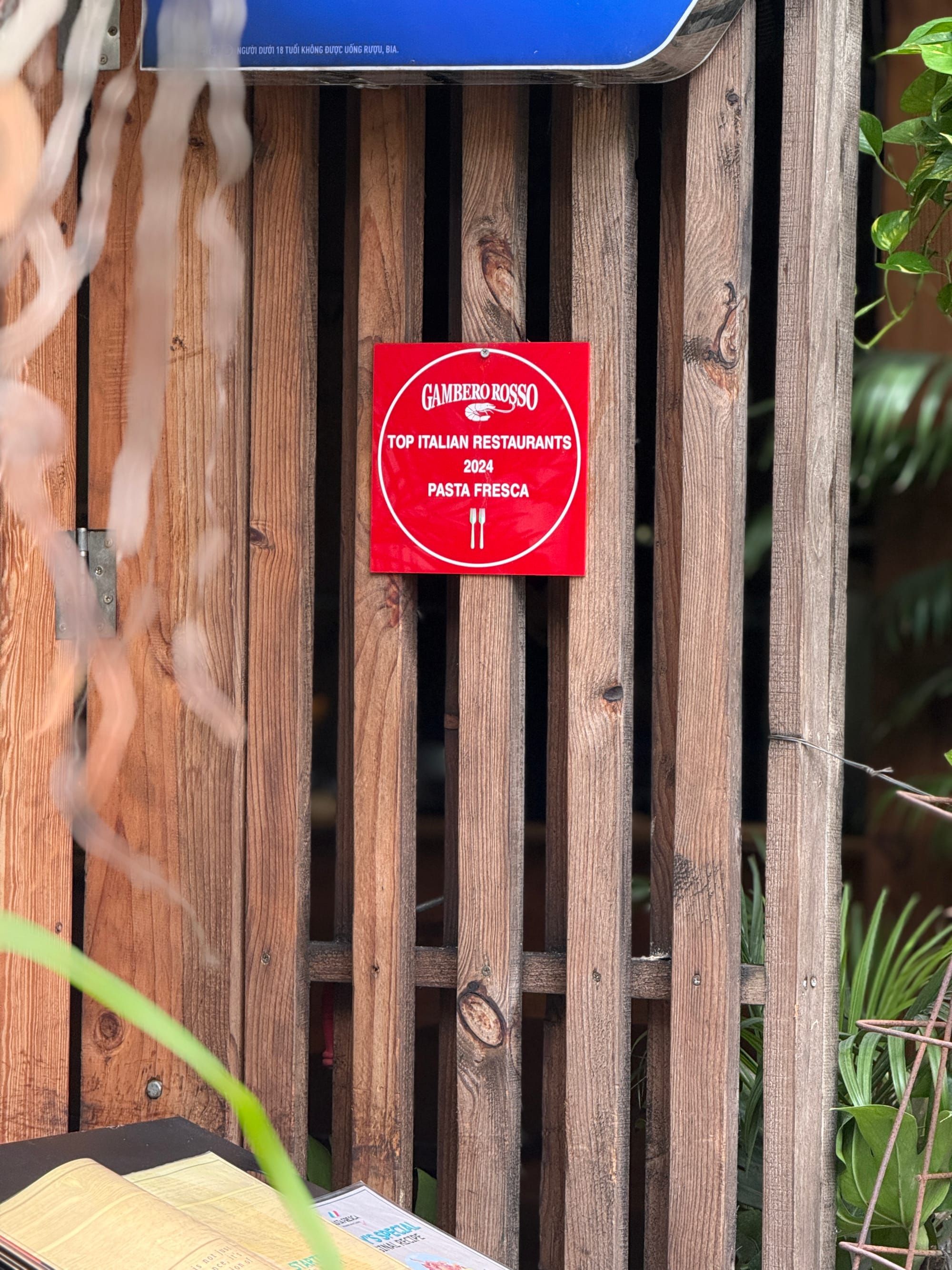 Phía sau rặng cây, đây là một trong những quán hiếm hoi tại Việt Nam, thậm chí trên toàn Châu Á, đoạt giải thưởng Gambero Rosso. Đặc biệt họ có tới “2 chiếc nĩa”, con số khiêm tốn nhưng thật ra khá lớn. Vì vậy, bạn có thể trải nghiệm chất Ý thuần túy sau bức tường xanh này mà không cần phải bay đến châu Âu xa xôi. Tuy nhiên, vẫn còn một lưu ý nhỏ...