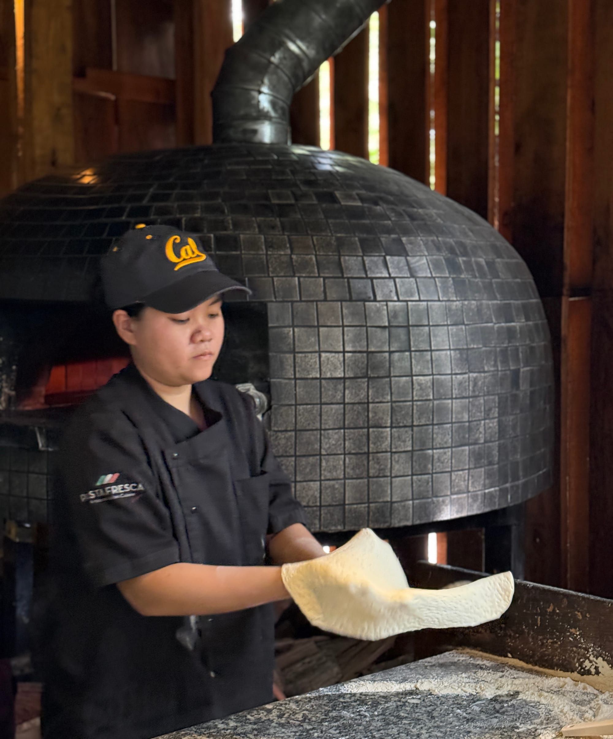 Những chiếc bánh Pizza ở đây sẽ được nướng bằng lò củi, kiểu làm truyền thống của Ý. Vì vậy mùi thơm hơn, từng phần từ trong ra ngoài đều có một vị ngon riêng, thay đổi nhè nhẹ. Đế bánh được làm khá mỏng trong khi chất bột đậm đà, nên chỉ đế thôi đã đủ hấp dẫn.