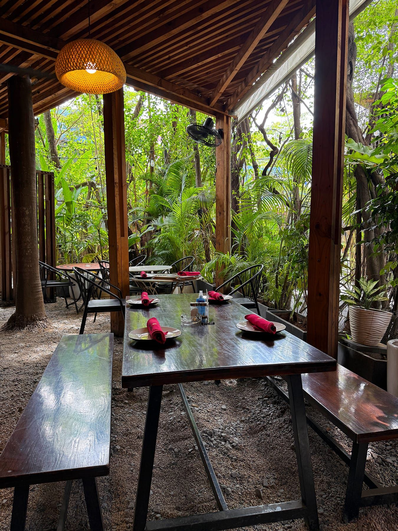 Một không gian yên tĩnh tách biệt với bên ngoài. Bàn ghế đơn giản và cảm giác kín đáo nhẹ nhàng buông xuống xung quanh.