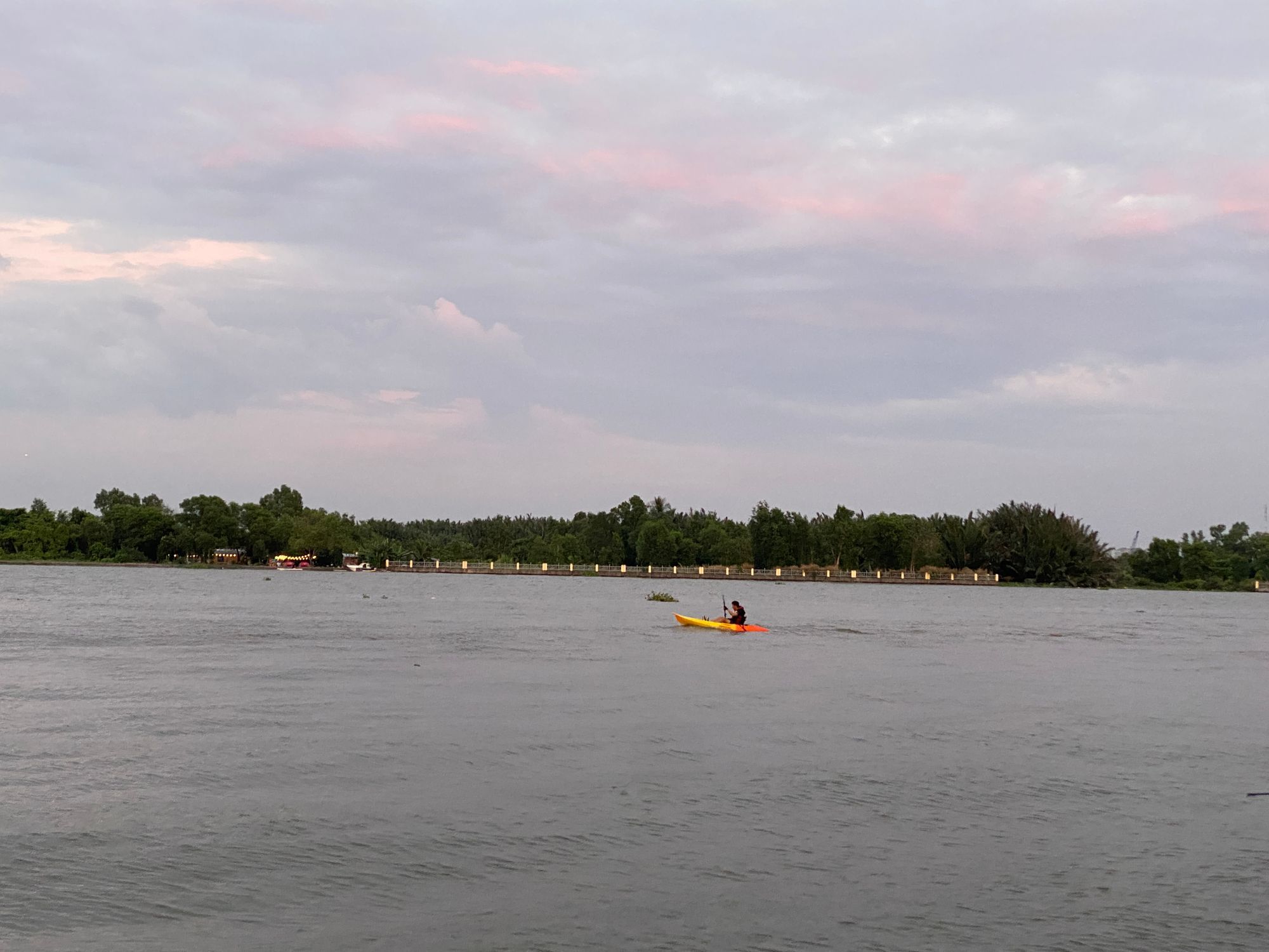 Thời điểm này khi nước đạt đỉnh, dòng chảy sẽ đứng lại, không gian xung quanh trở nên mênh mông kì lạ, khác với bờ Rạch Chiết bình thường không?