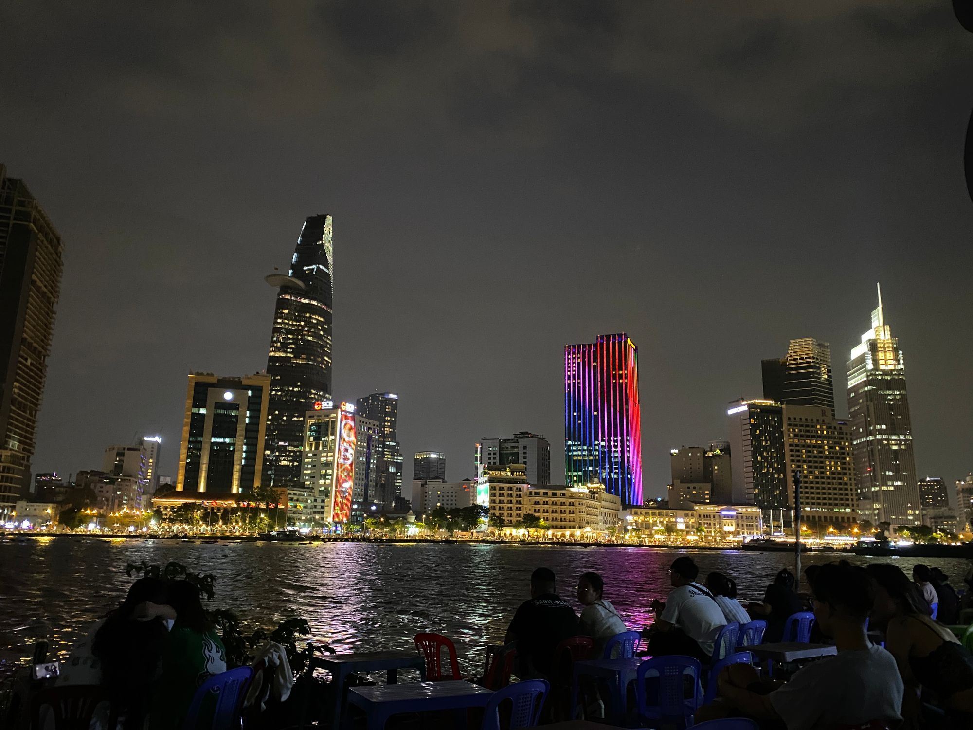 Tận hưởng thành phố bên sông vào buổi tối cũng là một trải nghiệm hấp dẫn bạn nên thử. Dù ngăn cách nhau bởi một khoảng mênh mông tĩnh lặng, nhưng bầu không khí nhộn nhịp của phố xá rực rỡ bên kia dường như cũng chạm tới bên này.