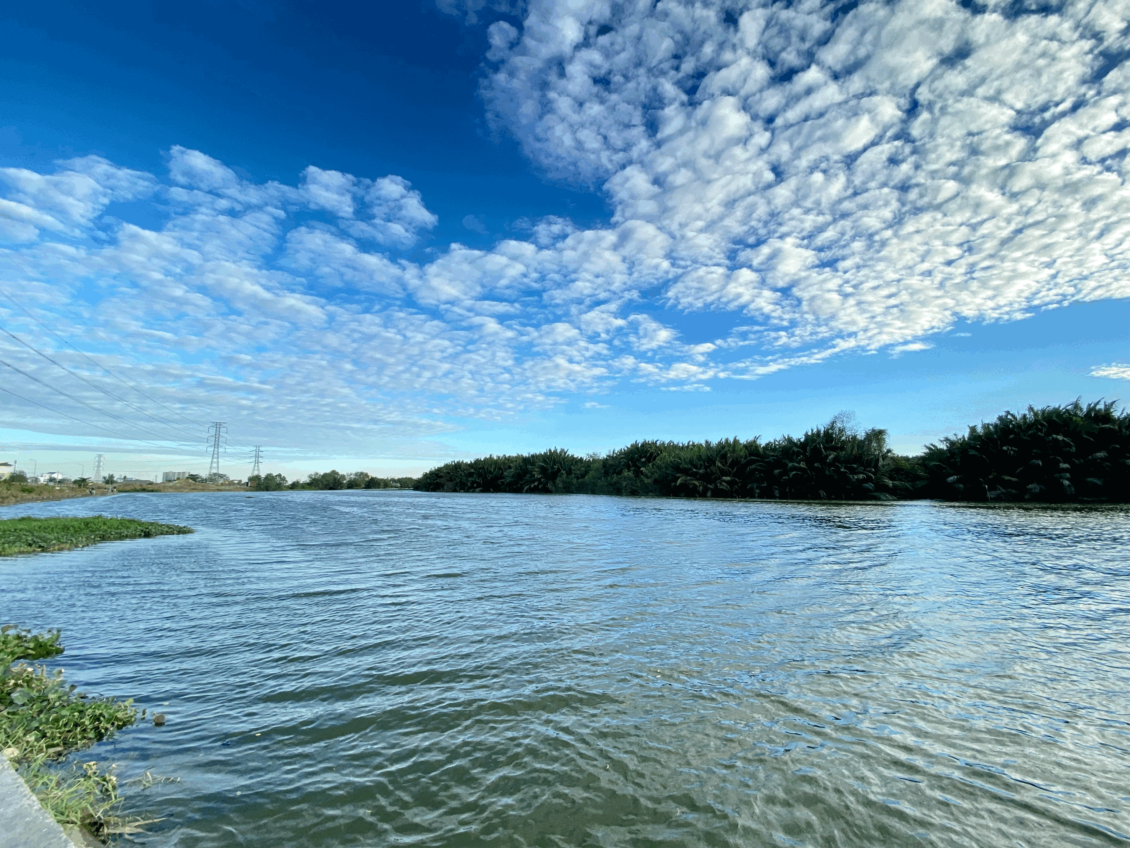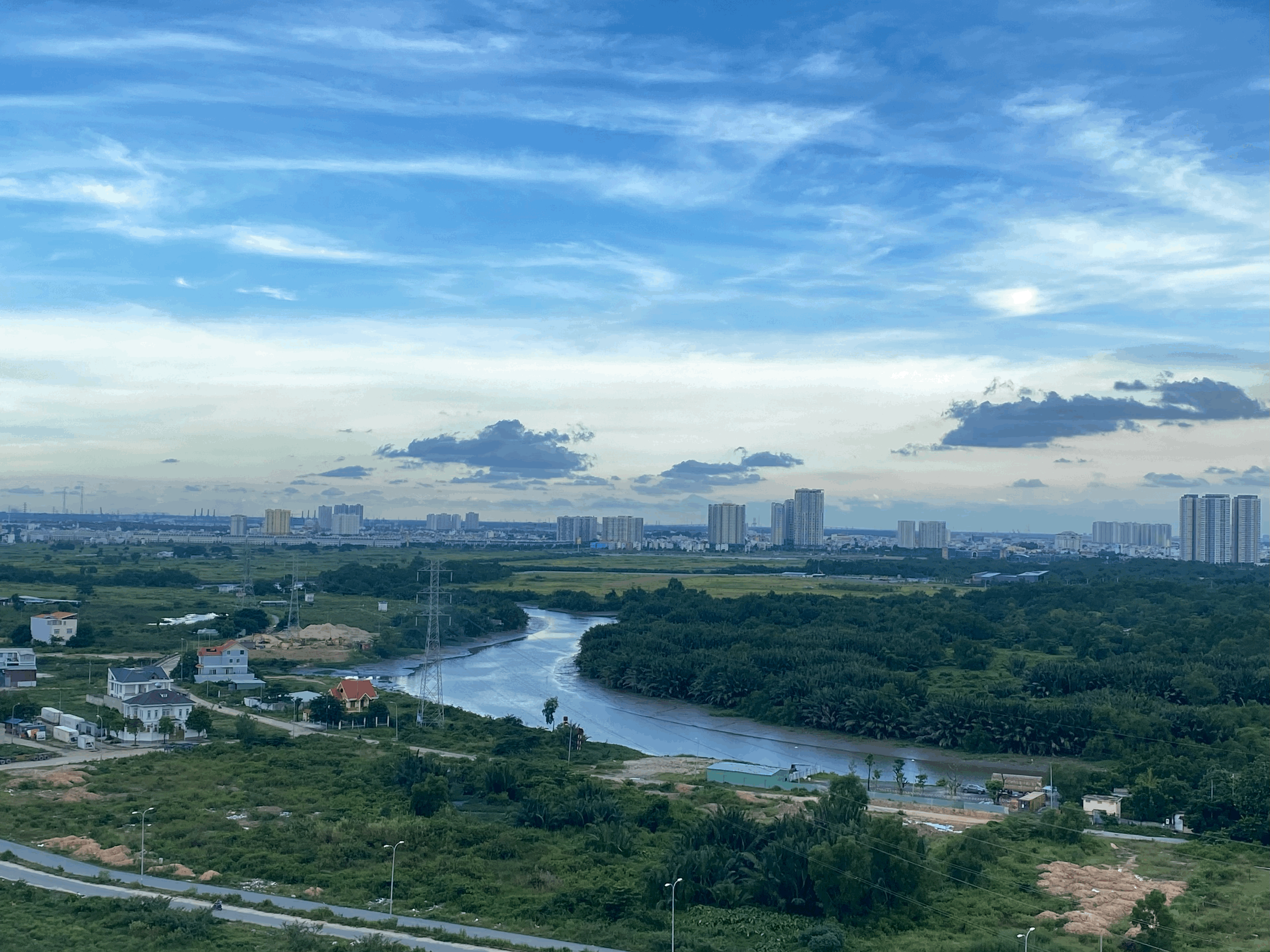 Con sông đi qua vùng ngoại ô dường như hiền hòa và thơ mộng hơn với sắc xanh từ cây cối hai bên, dù vậy bạn vẫn có thể cảm nhận được nét Sài Gòn thoáng qua từ khu đô thị phía xa hay những căn biệt thự gần đó :)
