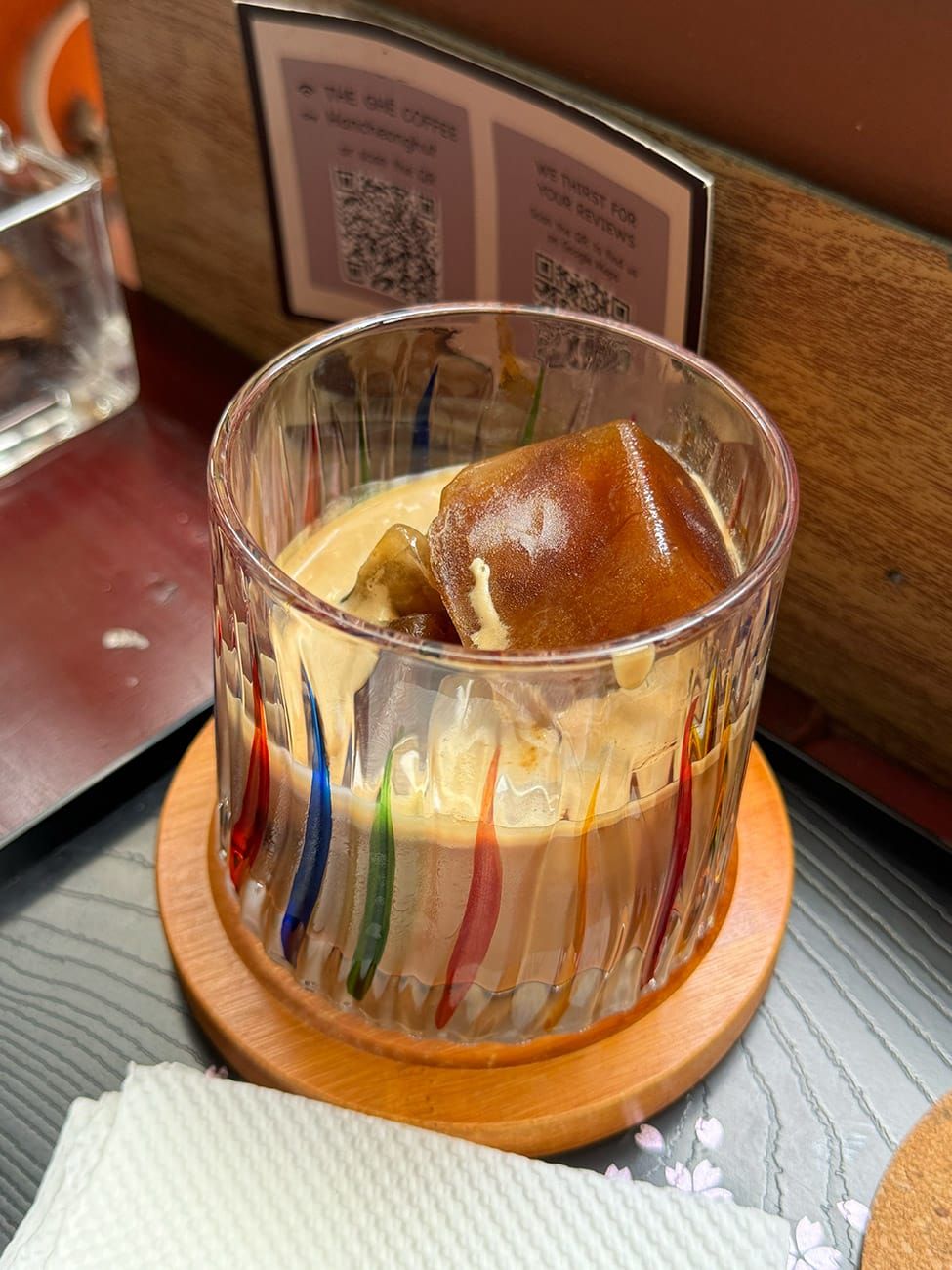 Đây là quán The Ghé. Sau cùng, đừng quên ly cà phê sữa đá tuyệt tác của họ. Những viên đá thả vào trong được đông lạnh từ cà phê nguyên chất trước, sau đó tan ra giúp giữ hương vị đậm đà từ ngụm đầu tiên cho đến cuối cùng. Ngoài ra, các loại espresso khác đều đạt chất lượng khá tốt với hương vị độc đáo riêng biệt, có thể làm cho buổi chiều của bạn sẽ qua nhanh.