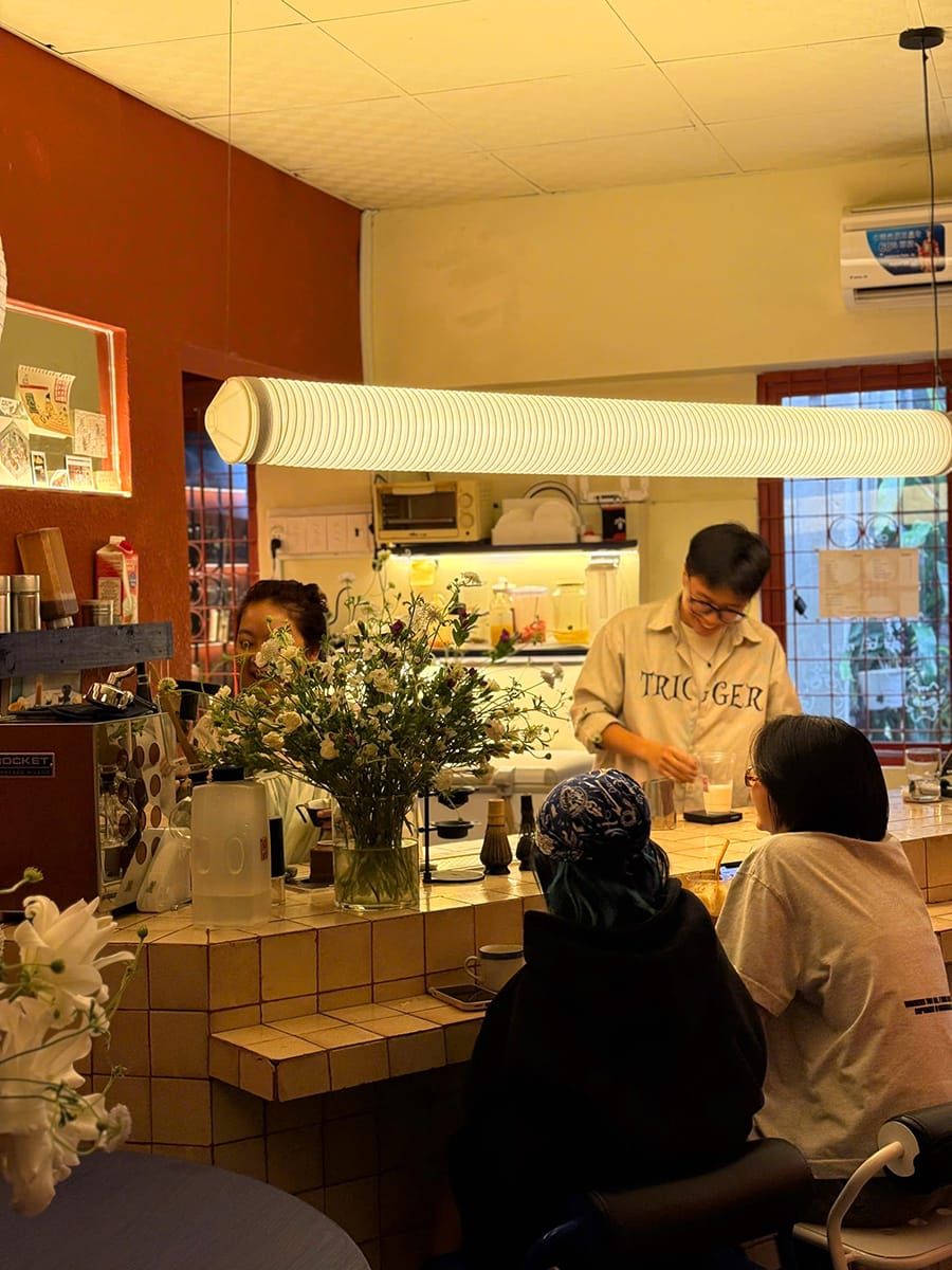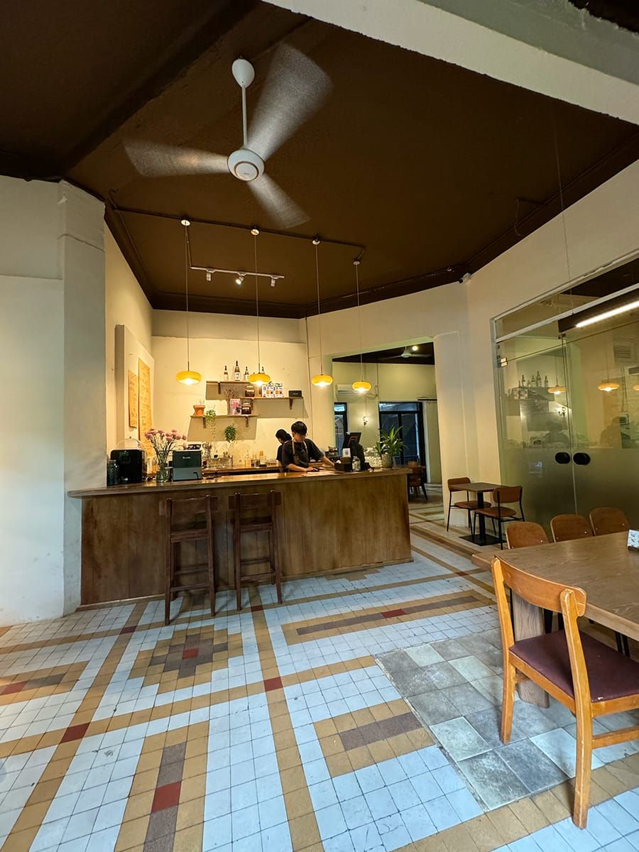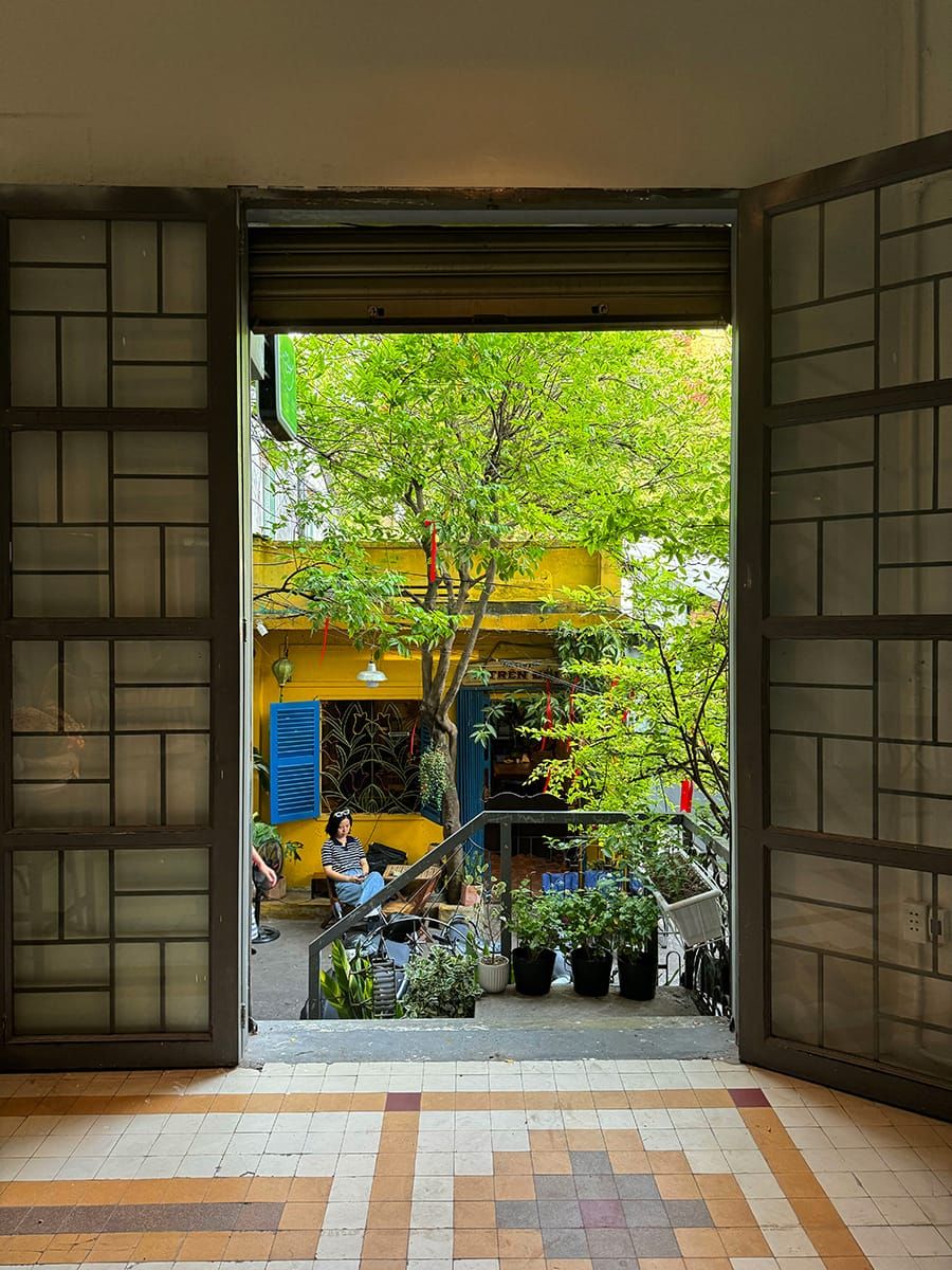 Bên ngoài hẻm số 1 có tiệm bánh cuốn Bắc từ lâu nổi tiếng với giới văn phòng quanh đây. Sâu bên trong còn một số quán ăn gia đình khác. Trong cùng là quán cà phê nhỏ xíu với chất lượng tạm ổn, nhưng không gian rực rỡ mang lại màu sắc ấm cúng và sự tương phản dễ chịu với các bức tường đổ phía ngoài.