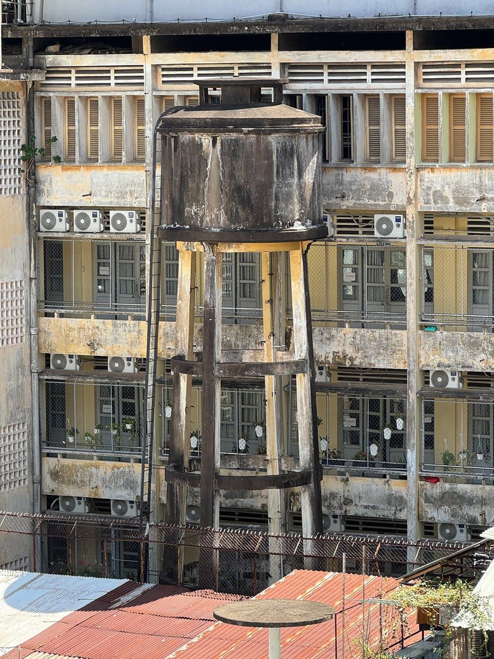 Khi lên đến tầng trên cùng, một lối hẹp sẽ mở ra và bạn có thể đi theo đó, dọc lối nhỏ với cầu thang ngoài trời. Không cần vội vã bởi vì khung cảnh này không dễ để bắt gặp ở những nơi khác: Một bồn điều áp nước cũ, dãy nhà đối diện, khu vườn trên cao, Sài Gòn thấp thoáng...