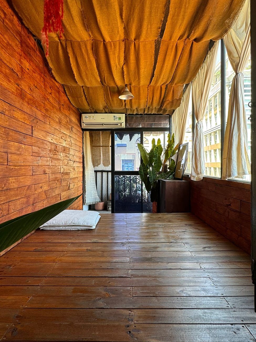 Những góc lưng trời hiếm thấy để chúng ta có thể nhìn về Sài Gòn qua tầng gió cũ. Đây là Người Tám Chuyện House. Quán rất nhỏ, yên tĩnh và riêng tư. Tuy nhiên, bạn phải liên hệ trước với họ qua fanpage và đặt trước thức uống trong một menu không thể nào giản dị hơn.
