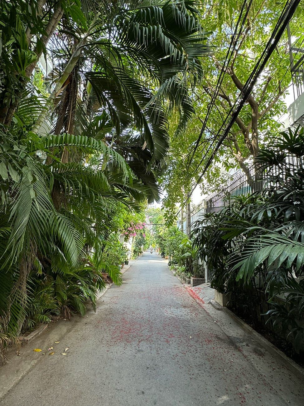 Đi dọc theo các con đường nhỏ này, dường như bạn dạo qua tất cả: sự bình yên, hàng quán, shopping, phong cảnh… và trên hết là những mảng xanh phủ kín lối đi, mát rượi.