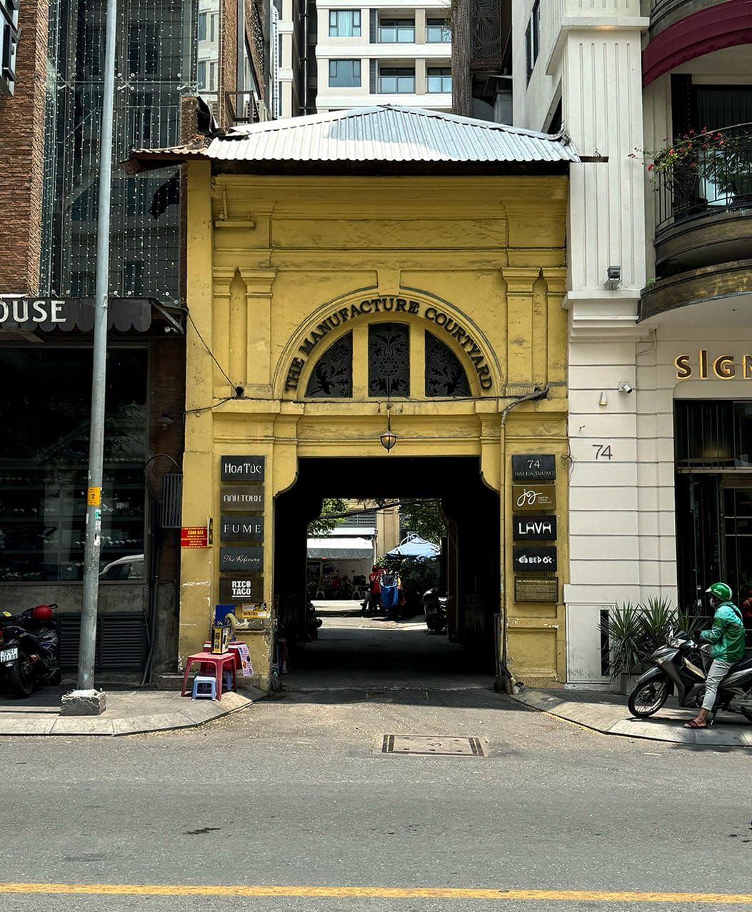 Một góc cô đọng giữa trung tâm Sài Gòn, nhiều lựa chọn thú vị, nhiều văn hóa đan xen, lại nằm tách biệt khỏi con đường lớn. Muốn vào trong, bạn đi qua cổng chính còn nguyên từ năm 1881, trang trí bằng những nhánh hoa ngày nay đã bị cấm hoàn toàn.