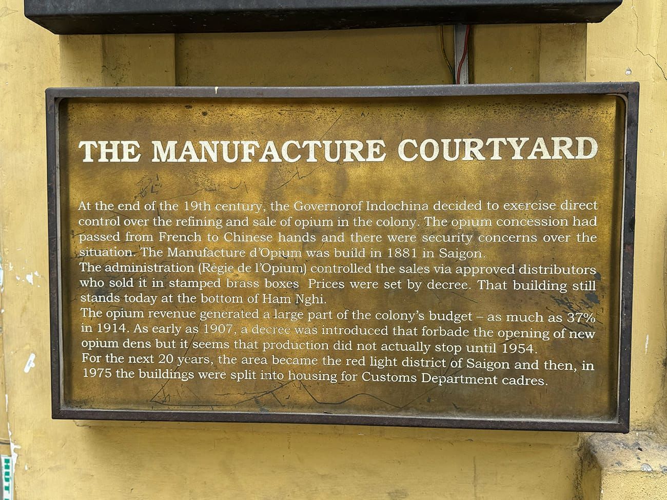 Người Pháp không bao giờ xem mình là kẻ xâm lược, chiếm đóng hay thực dân. Họ tự hào mang đến Việt Nam nhiều thứ bổ ích như chữ viết, văn minh, kiến trúc… trong đó có cả thuốc phiện. Nhà máy này được xây dựng vào năm 1881, nơi làm ra loại ma túy tinh khiết hàng đầu Châu Á lúc bấy giờ, theo công nghệ chiết xuất tiên tiến nhất.
