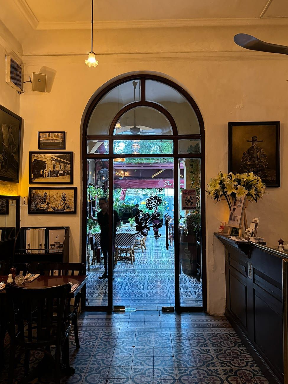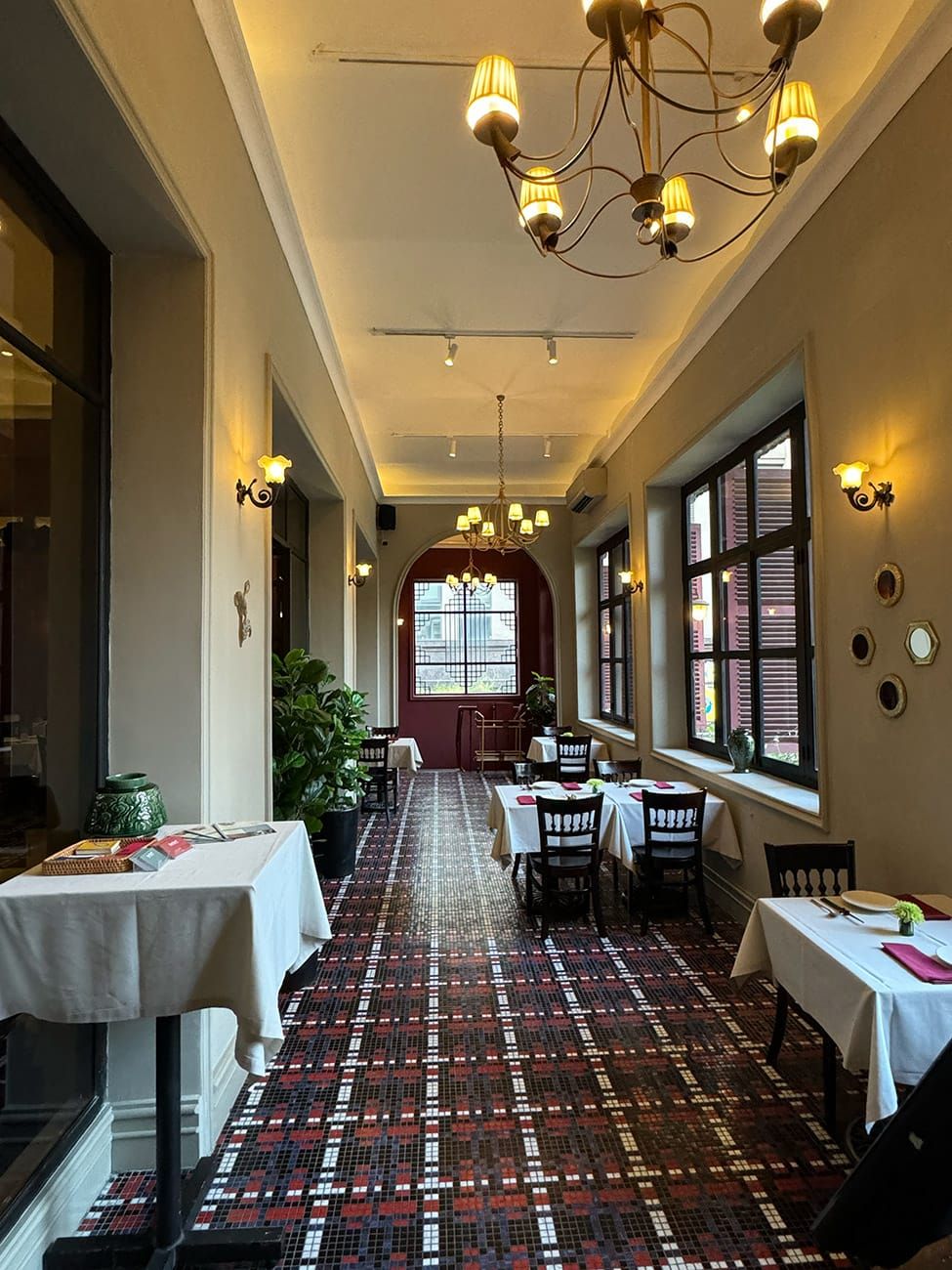 Qua khỏi cầu thang, bạn sẽ đến Hoa Túc, một nhà hàng Việt Nam nổi tiếng khác. Vị trí này trước kia là nhà kho chứa thuốc nên không còn cửa sổ vòm phức tạp nữa. Tuy nhiên Hoa Túc vẫn trang trí không gian của mình rất Đông Dương cổ điển.