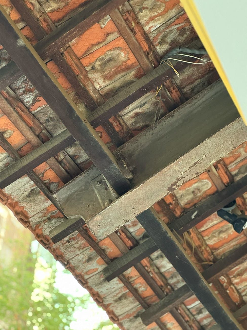 Kiến trúc bên trong còn khá nguyên vẹn với tường dày, phòng ốc và những thanh dầm sắt kiên cố trên mái.