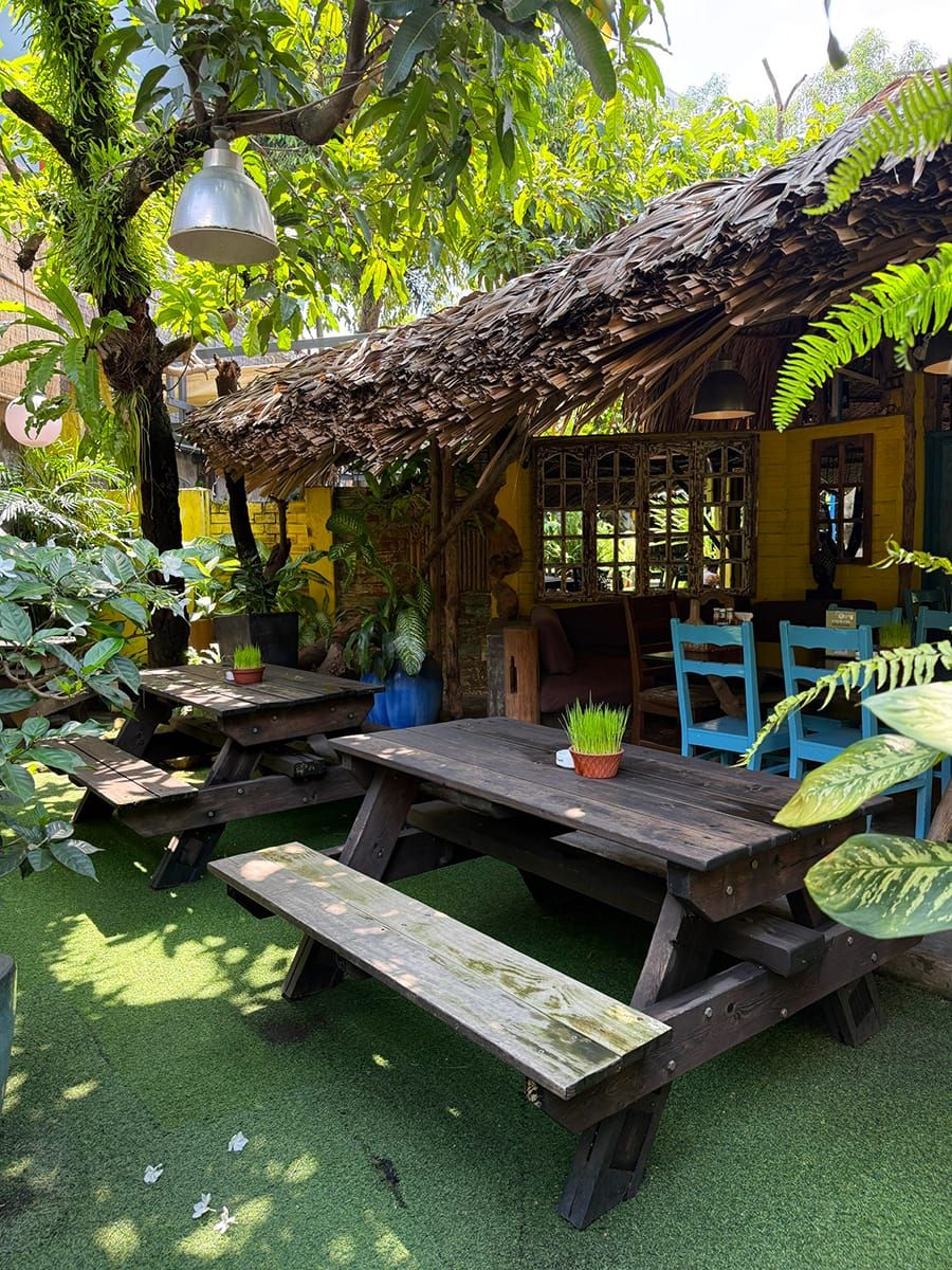 Hãy chọn bất kỳ góc nhỏ kín đáo nào để chill hoặc cũng có thể ở khu vực bàn lớn cho đỡ... cô đơn. Dù ở đâu, không khí vẫn luôn nhẹ nhàng, êm dịu, như khoảng sân thân quen ở nhà.