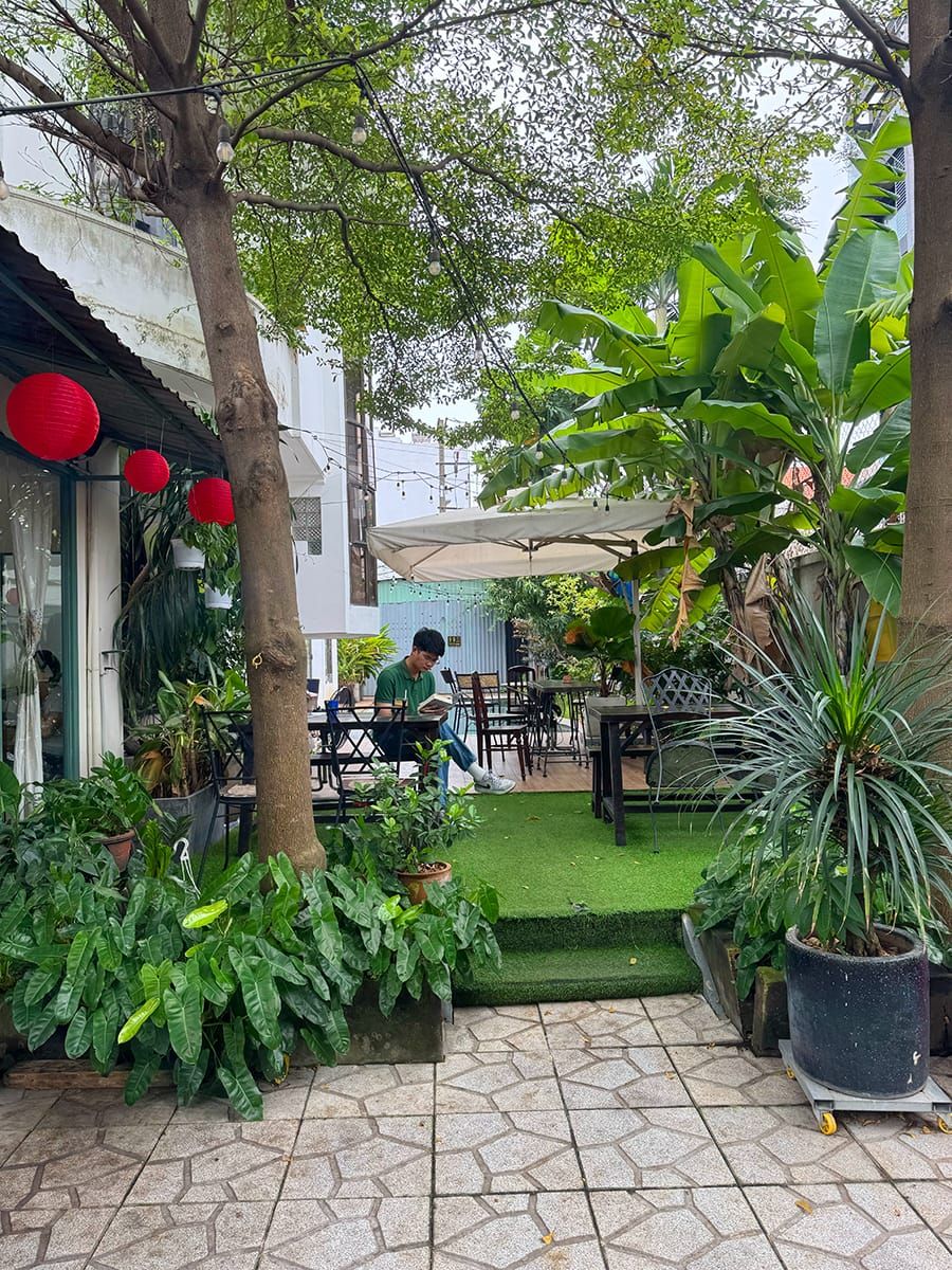 Khu phức hợp này ở vị trí khá khuất, trên con đường không phổ biến (số 19 đường 46). Vì vậy, đến đây bạn tìm thấy khoảng xanh, kèm theo đó là sự yên tĩnh bởi khách hàng ở đây phần lớn sống xung quanh khu vực này. Họ nói nhỏ, đọc sách, hàn huyên, chơi với chó... Mọi thứ cô đọng, gần gũi.