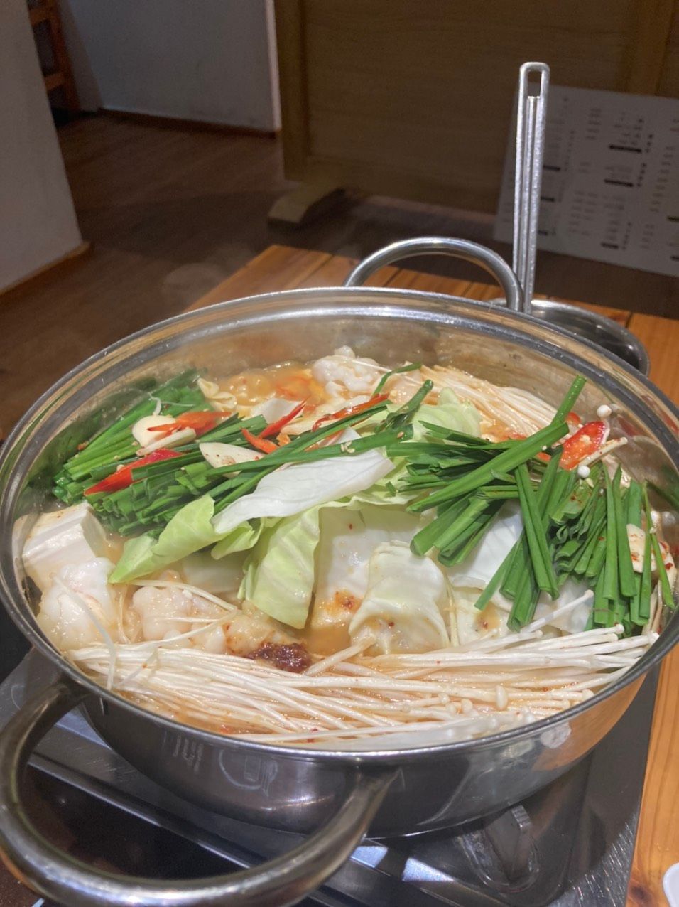 Điều này chủ yếu đến từ việc món motsunabe nhìn vào khá nhiều rau, phần lòng bò nhạt với sự hiện diện khiêm tốn. Lẩu lòng bò có thể ăn kèm mì ramen, nhưng các quán Nhật chính gốc ở Sài Gòn vẫn giữ đúng phong cách truyền thống, đó là khi bạn ăn xong các thành phần trong nồi, quán mới mang mì ra sau cùng, ăn chung với nước dùng lúc này khá sánh đặc. Tuy nhiên, bạn có thể gọi mì và ăn ngay từ đầu theo kiểu Việt Nam. Cũng rất chi là kimochi nhé!