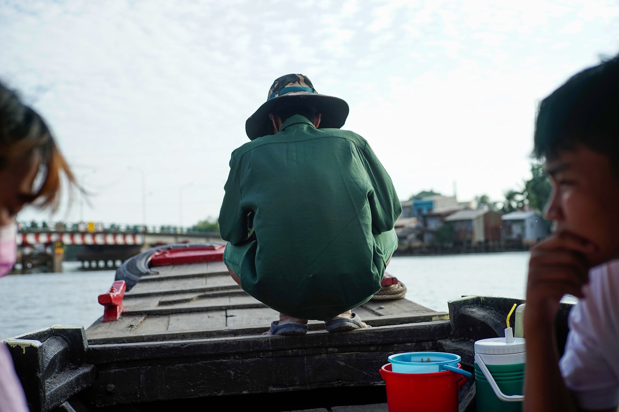 Đi trên một đoạn sông lớn gió lồng lộng và chuẩn bị chui qua cầu. Ảnh Nam Quach