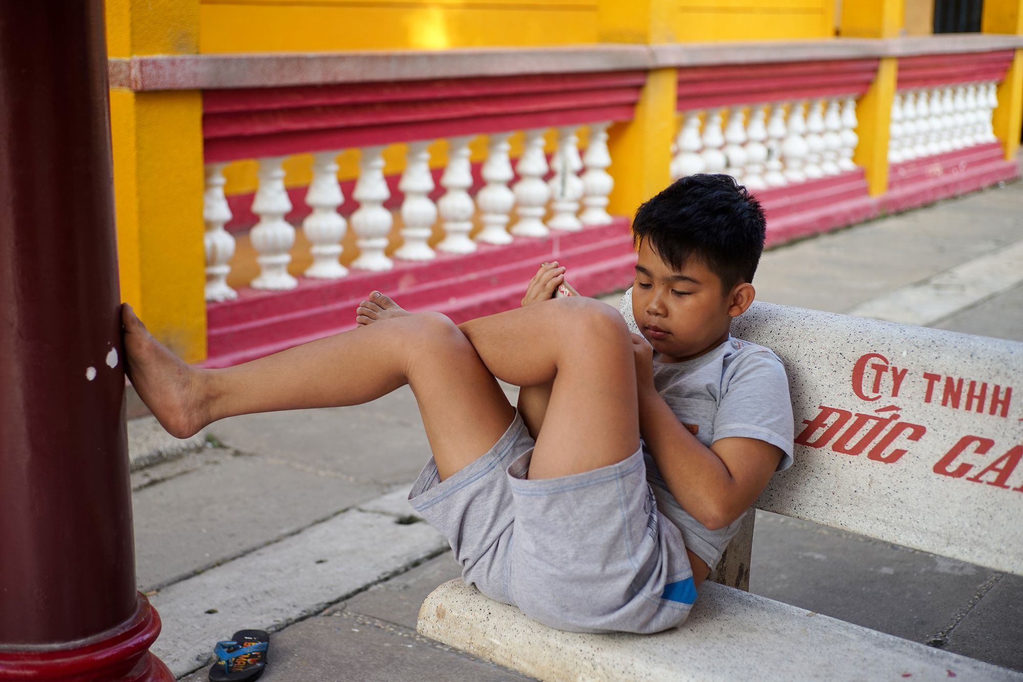 Sân đình là chỗ chill của những bạn nhỏ nhà gần đây. Ảnh Nam Quach