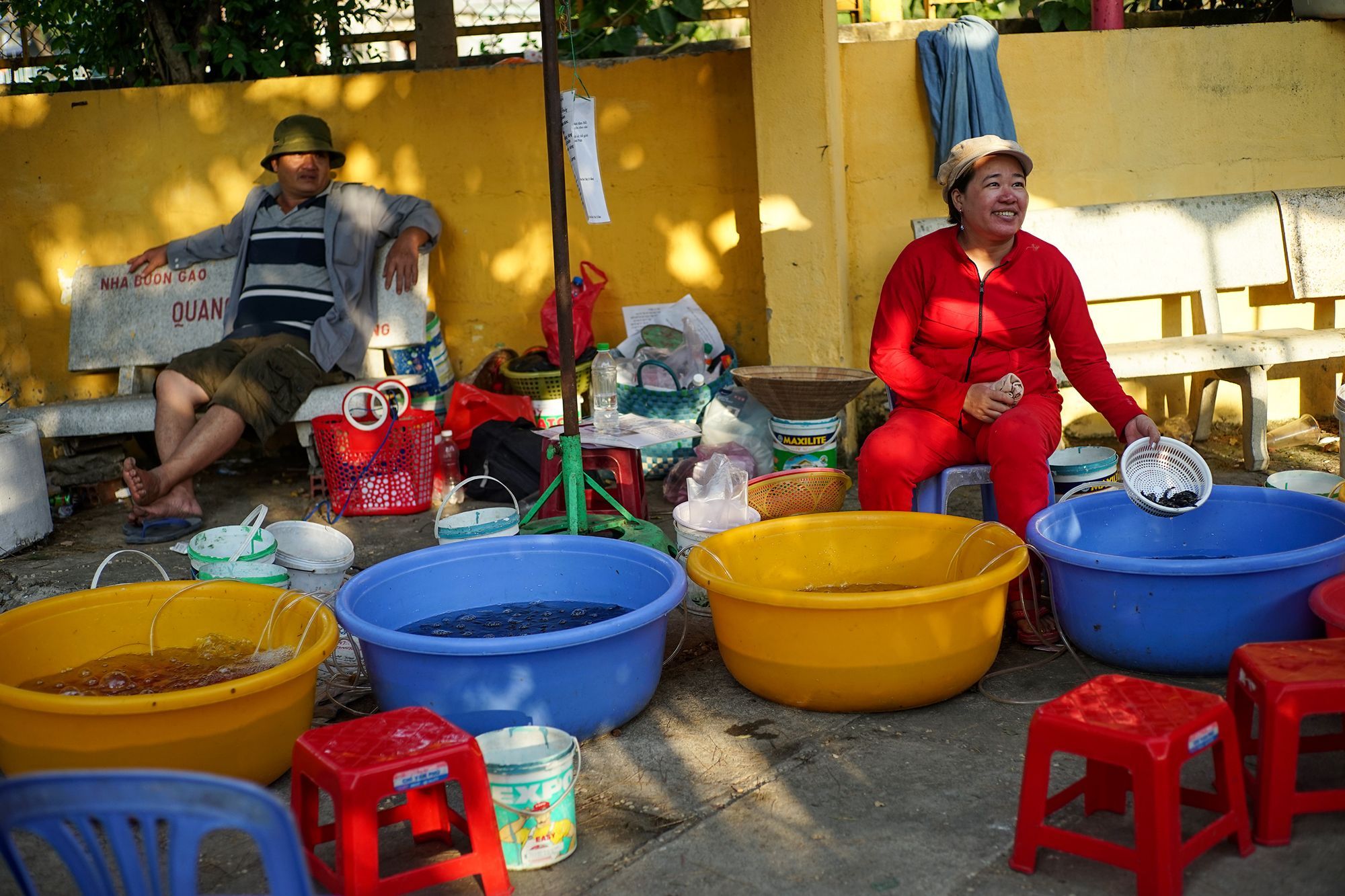 Khách đến đây thường mua rùa và cá để phóng sanh. Trang phục của cô chủ tiệm rất ấn tượng và rực rỡ. Ảnh Nam Quach