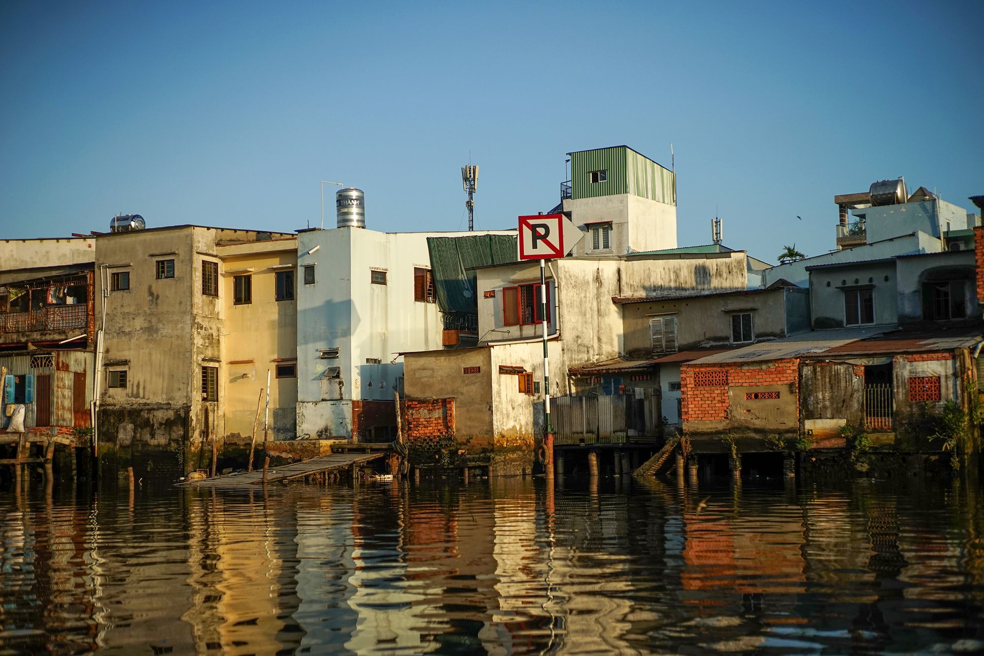 Nếu đi trên con đường phía trước dãy nhà này, chúng ta sẽ không biết được đằng sau lại có thêm mặt tiền view sông đẹp đến thế.