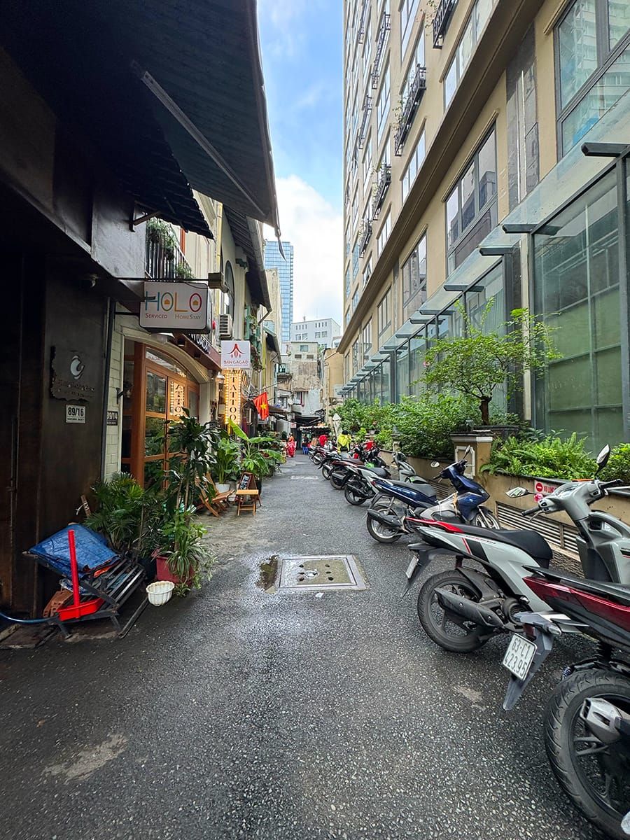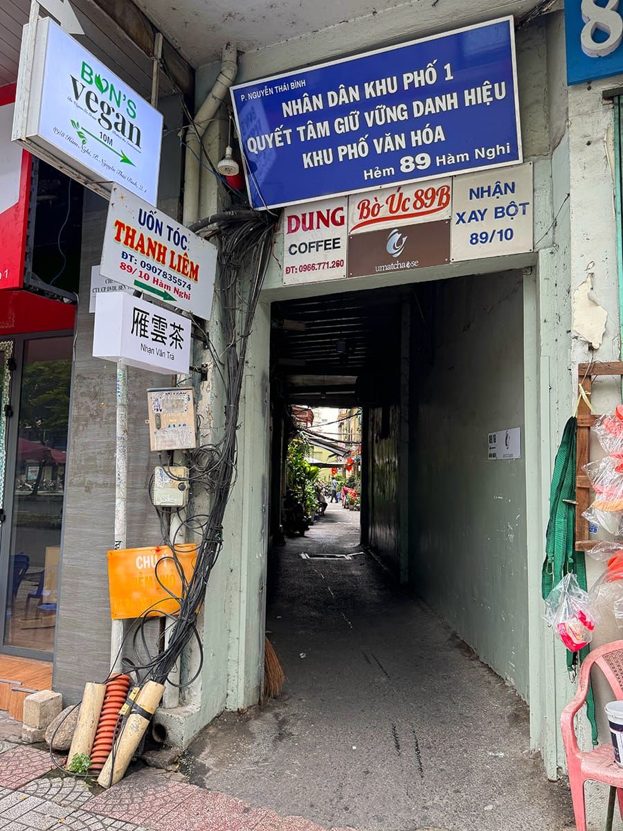 Lối đi nhỏ này có thể không được chú ý đến khi bạn lướt ngang qua. Nó tựa như đường dẫn vào hang động nào đó, hết vùng tối rồi đến khoảng xanh mát hiện ra sáng chói. Một đường hẻm sạch sẽ, nhiều chỗ ngồi hợp lý thích hợp cho bất kỳ lần lỡ bộ nào.
