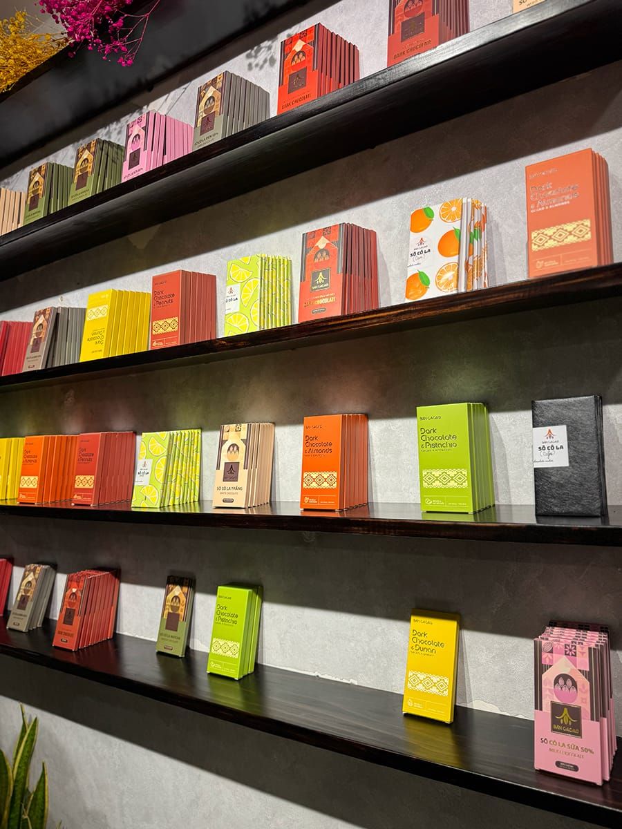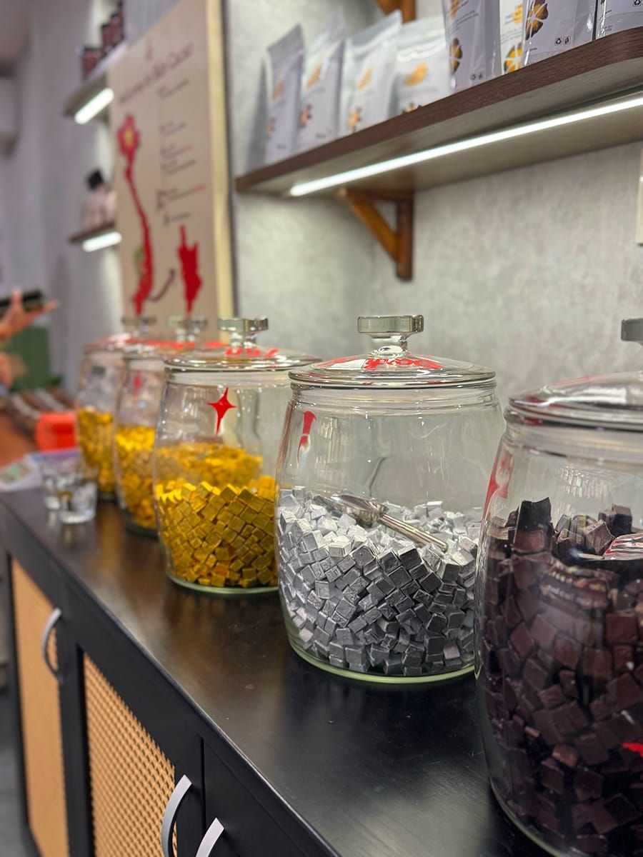 Dù sao, trong một ngày đẹp trời, bạn có thể thử cacao nóng, chocolate hay cà phê kiểu Việt Nam ở tiệm dễ thương này. Mọi thứ đều chỉn chu xinh xắn, từ những thỏi vàng, thỏi bạc đẹp mắt trong hũ thủy tinh cho đến các thanh màu sắc trên kệ, và tất nhiên phải kể đến chỗ ngồi cực kỳ thoải mái riêng tư bên ngoài.