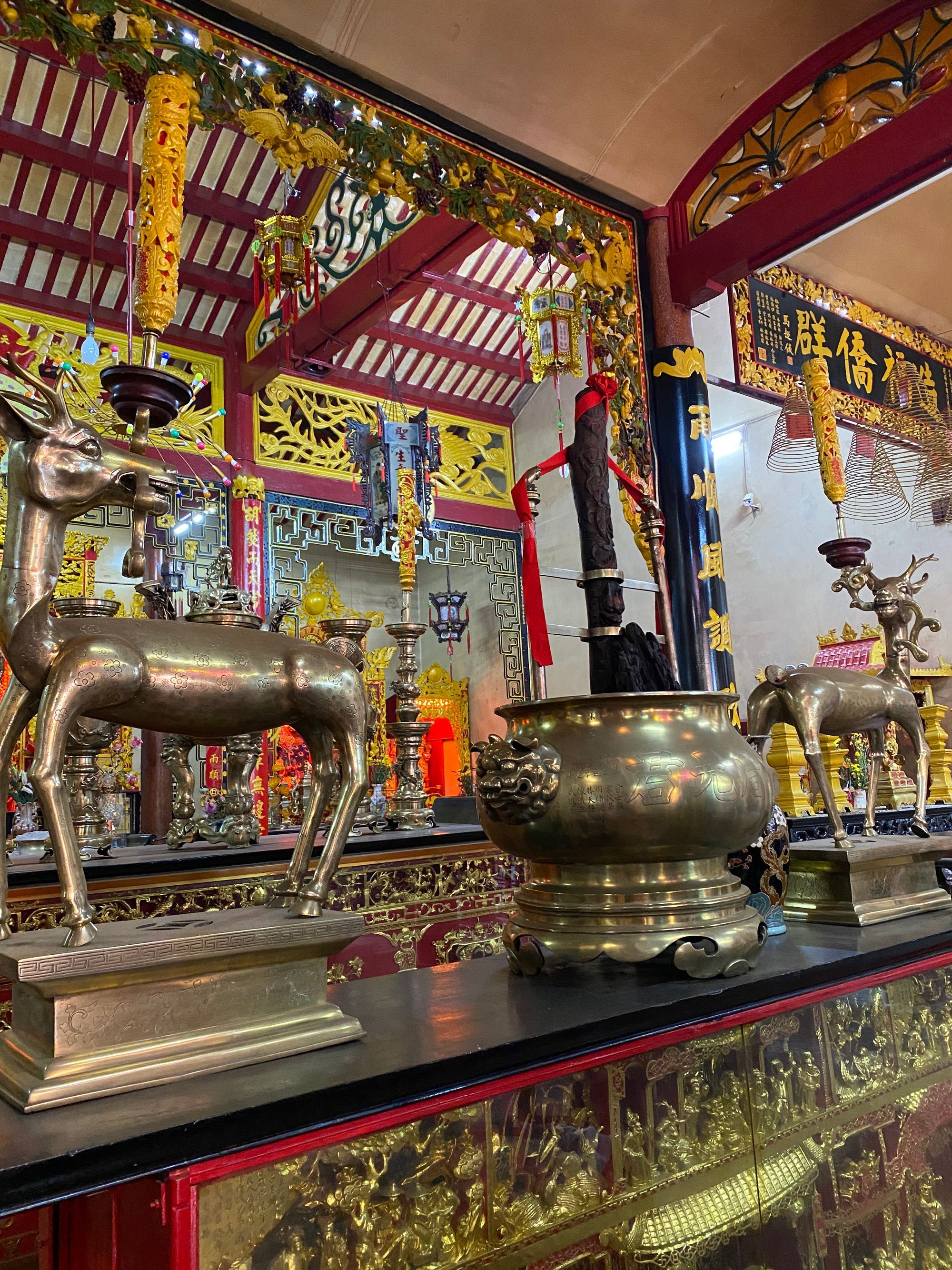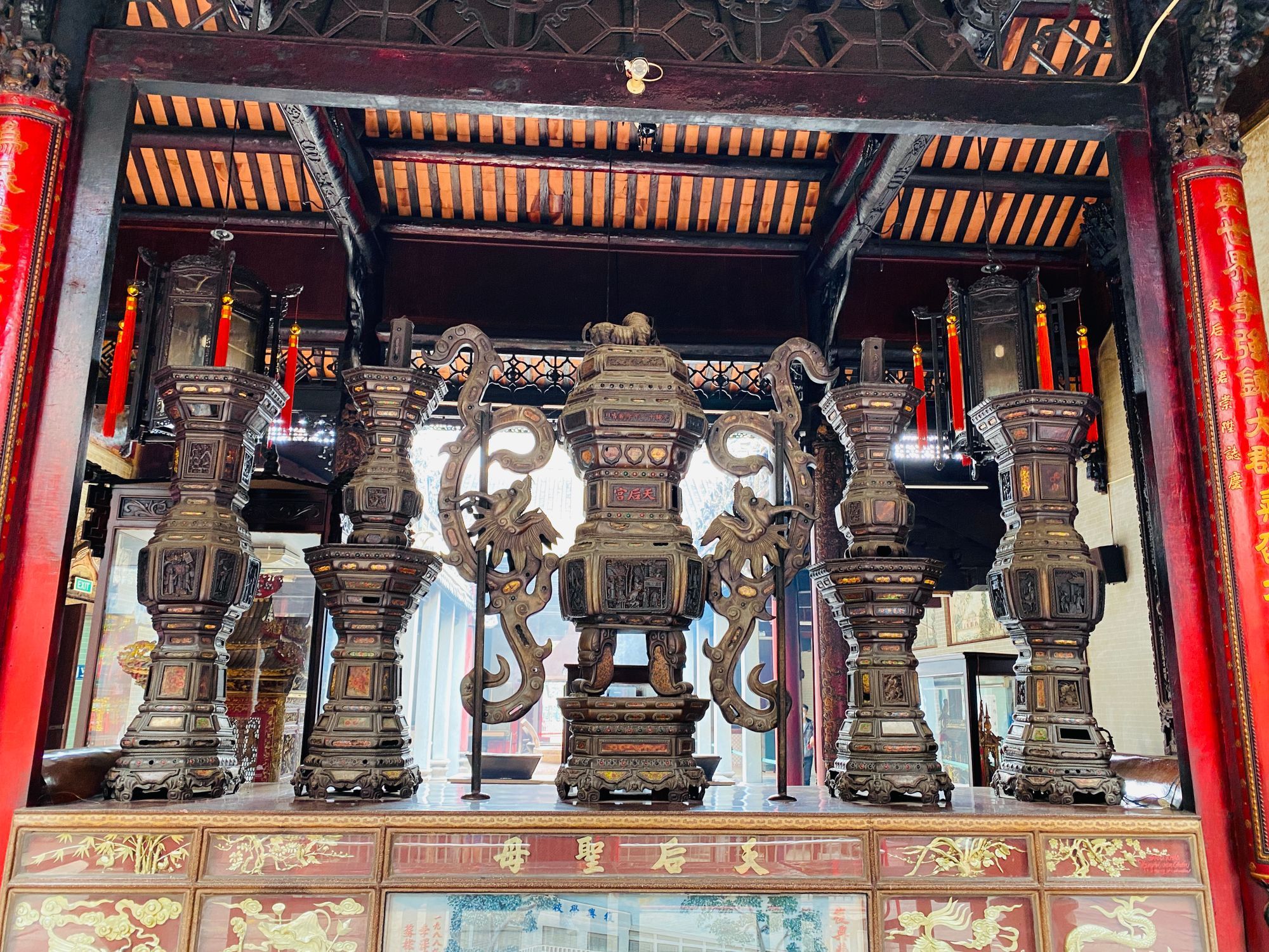 Những lư hương được điêu khắc thành hình con hươu. Đây là biểu tượng cho sự phúc lộc, may mắn và trường thọ. Thể hiện đúng với tinh thần của người Hải Nam khi xây dựng hội quán, cầu mong cho quốc thái dân an, mưa thuận gió hoà.