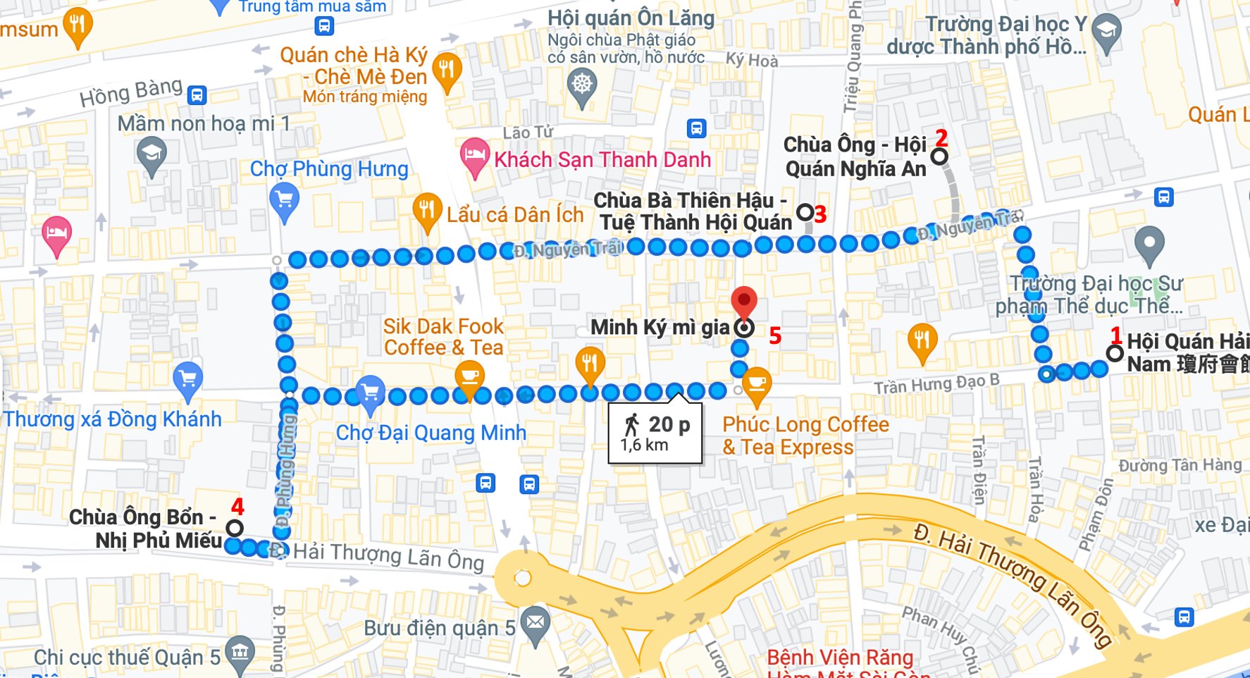 Quãng đường di chuyển không quá dài, bạn có thể đi bộ vừa để tận hưởng chậm rãi bầu không khí xung quanh cũng như linh động hơn trong việc gửi xe tại các hội quán.