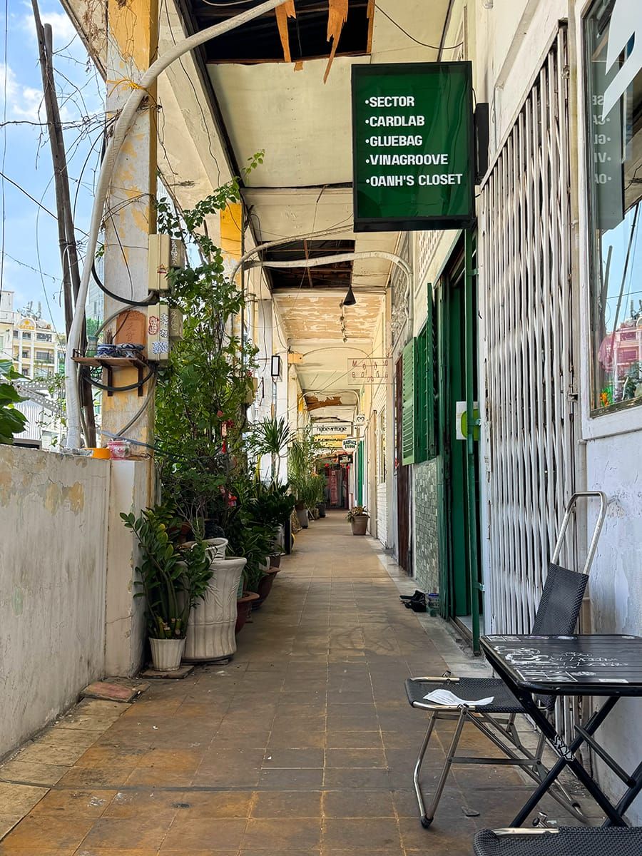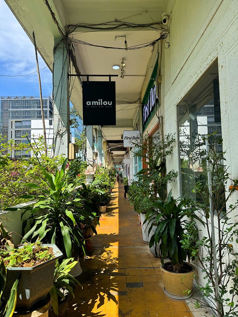Những dãy hành lang ở đây gồm hai tầng, phân bố cả mặt trước và mặt sau, tạo ra nhiều con đường nhỏ thú vị. Một cách ngẫu nhiên, các "con đường" này lại quy tụ những cửa hàng thời trang, phụ kiện... như dãy phố thập niên 90, nơi các cửa tiệm chen nhau trên nền gạch đã bạc màu.