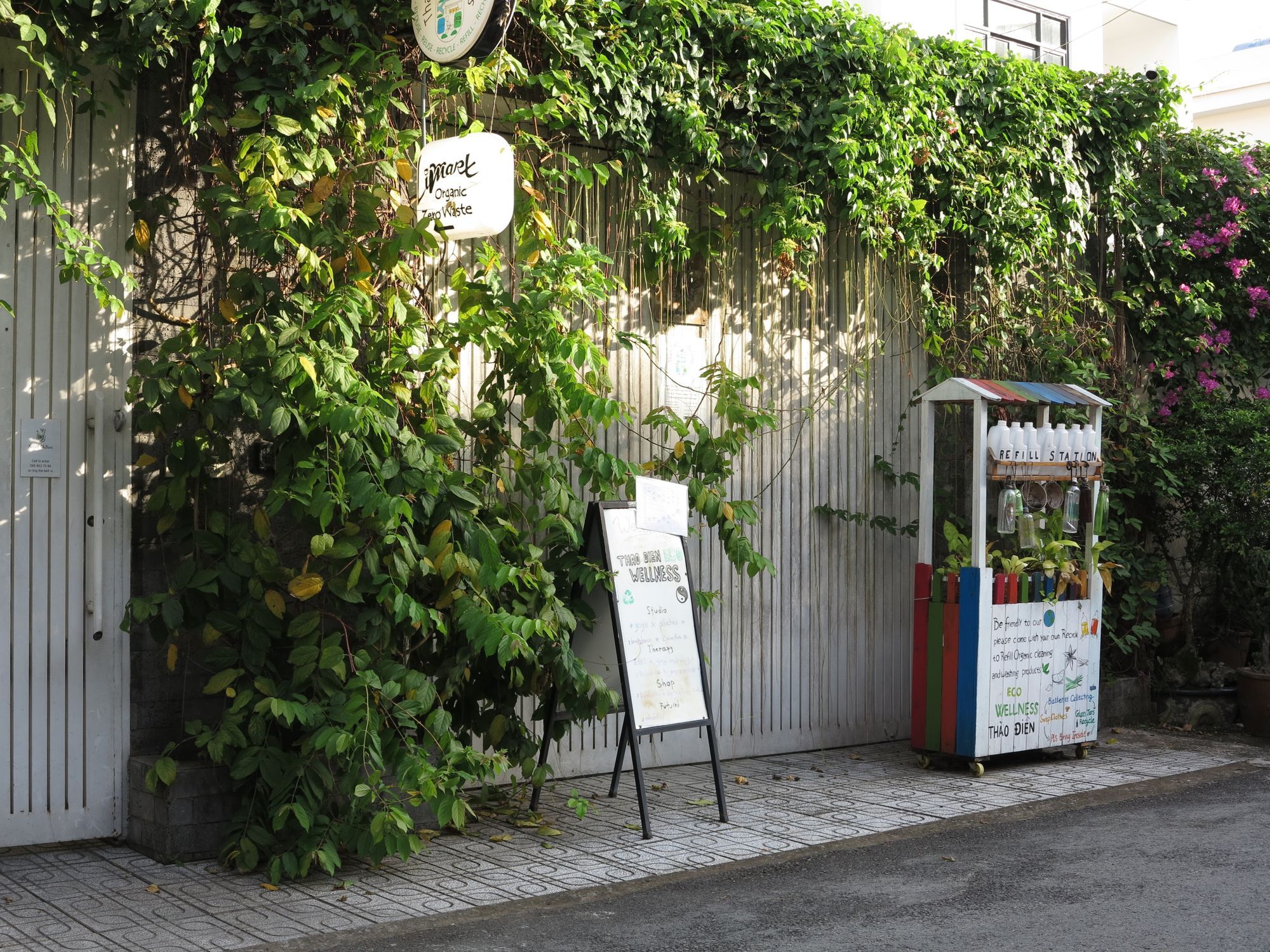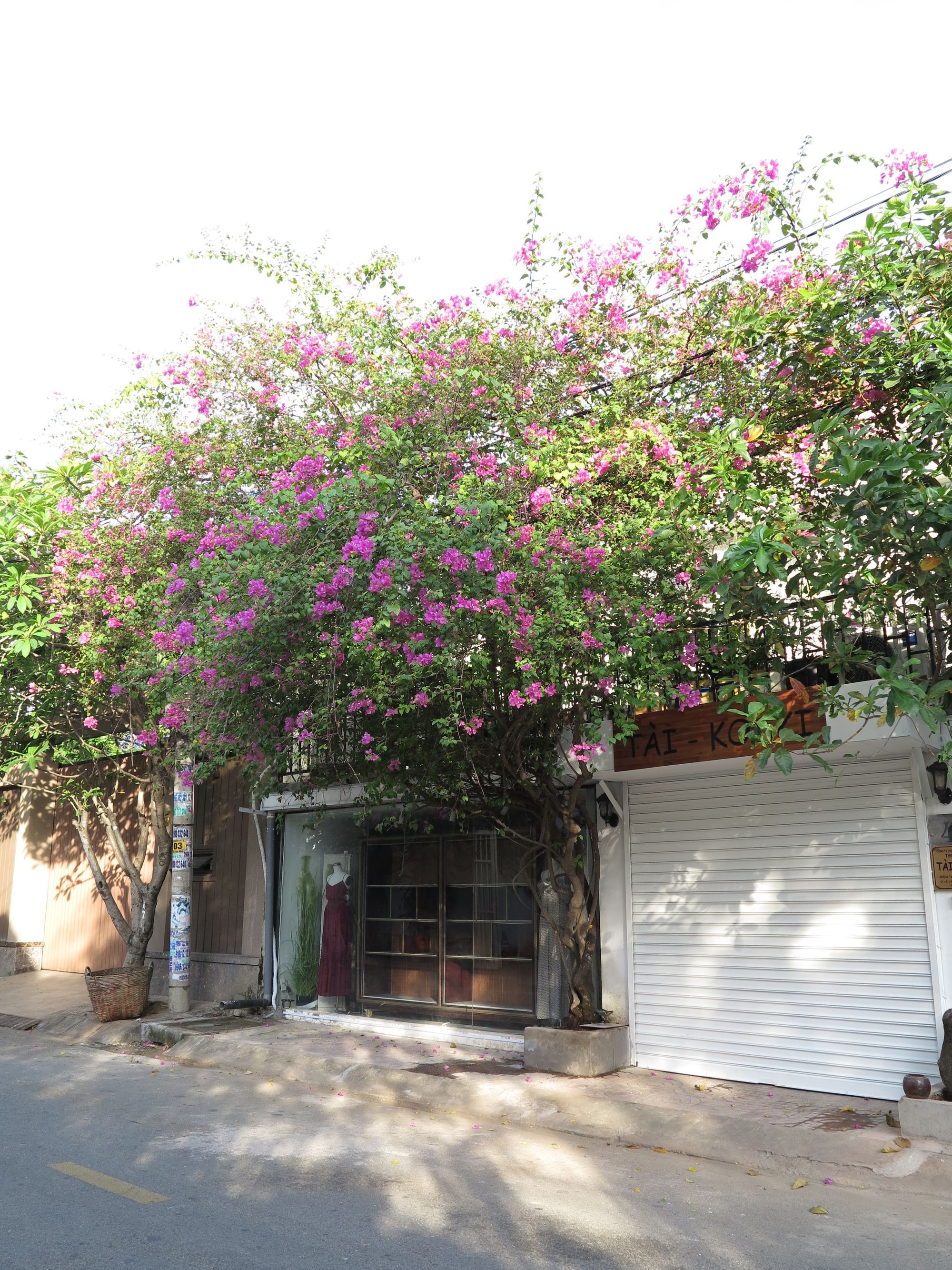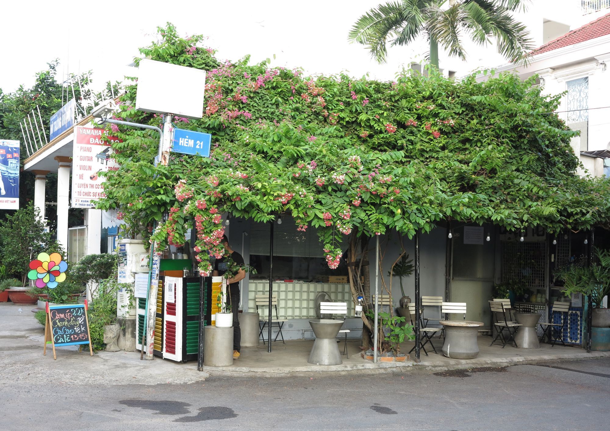 Mọi cây xanh ở Thảo Điền đều được nâng niu. Cho dù nó đứng chắn ngang mặt tiền quán như thế này.