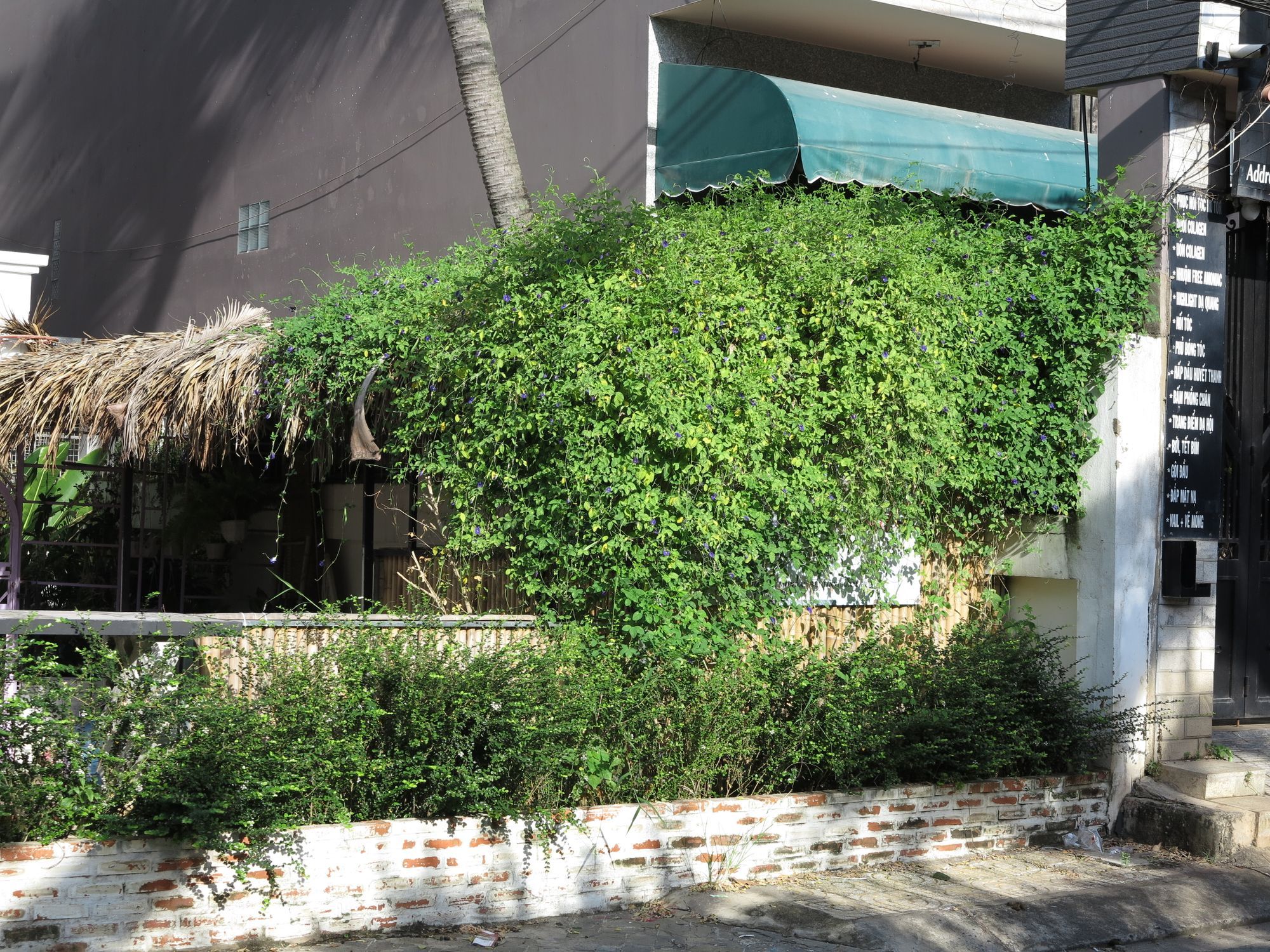 Giàn hoa Sử Quân Tử này giúp anh chủ tạo nên một mái che đáng giá ngàn vàng. Nhưng bạn chỉ phải trả 22k cho một ly cam ép bên dưới thôi.