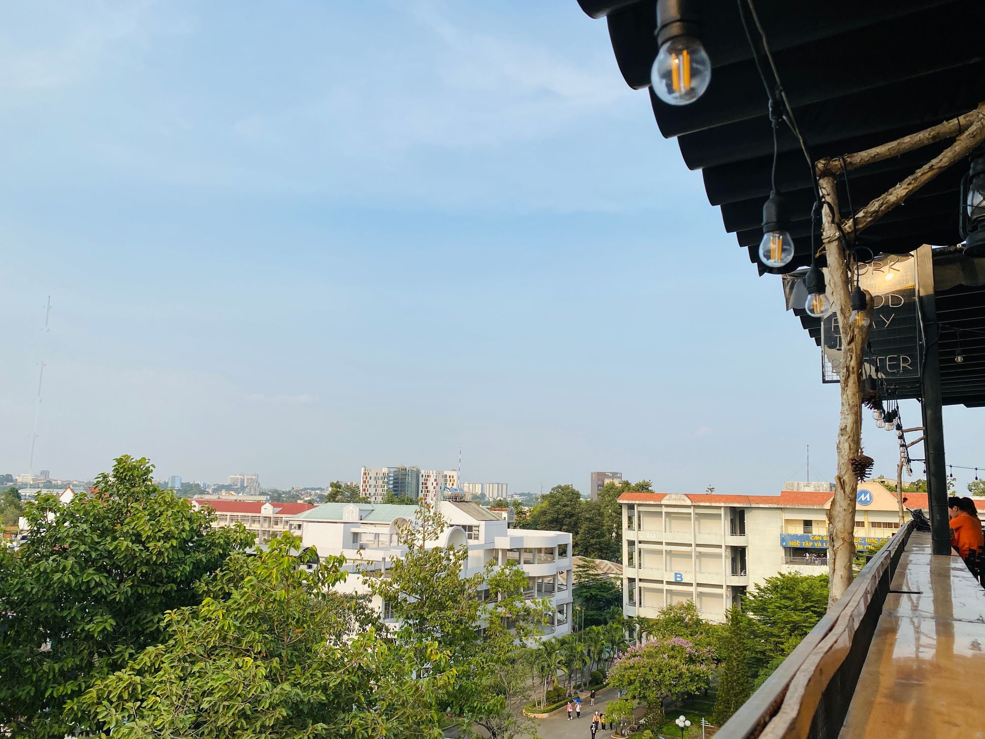 Vừa ngắm nhìn sự đan xen hài hoà giữa thiên nhiên và đô thị ở phía xa, vừa quan sát các hoạt động diễn ra ngay bên dưới sân một ngôi trường :) | Giảng Đường Rooftop