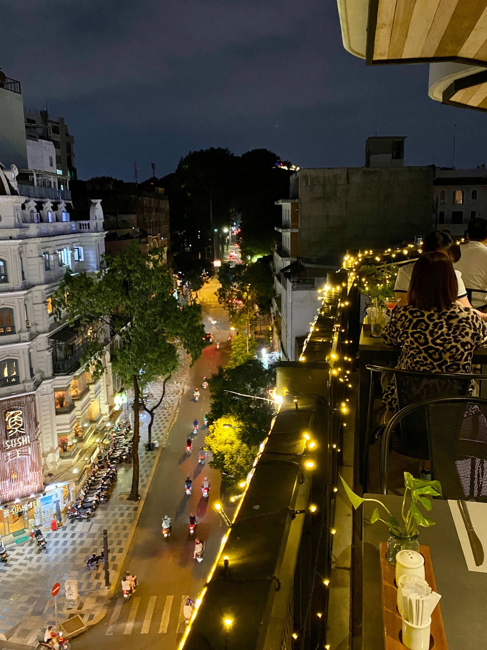 Có người thích ngắm thành phố ở nơi yên tĩnh, có người tò mò về con đường nhộn nhịp hay góc phố mình yêu thích trông sẽ như thế nào từ trên cao. Cũng có người chỉ thích thảnh thơi quan sát con đường mình hay... kẹt xe :) như tại vòng xoay Điện Biên Phủ này chẳng hạn. | The Rec Rooftop Bar