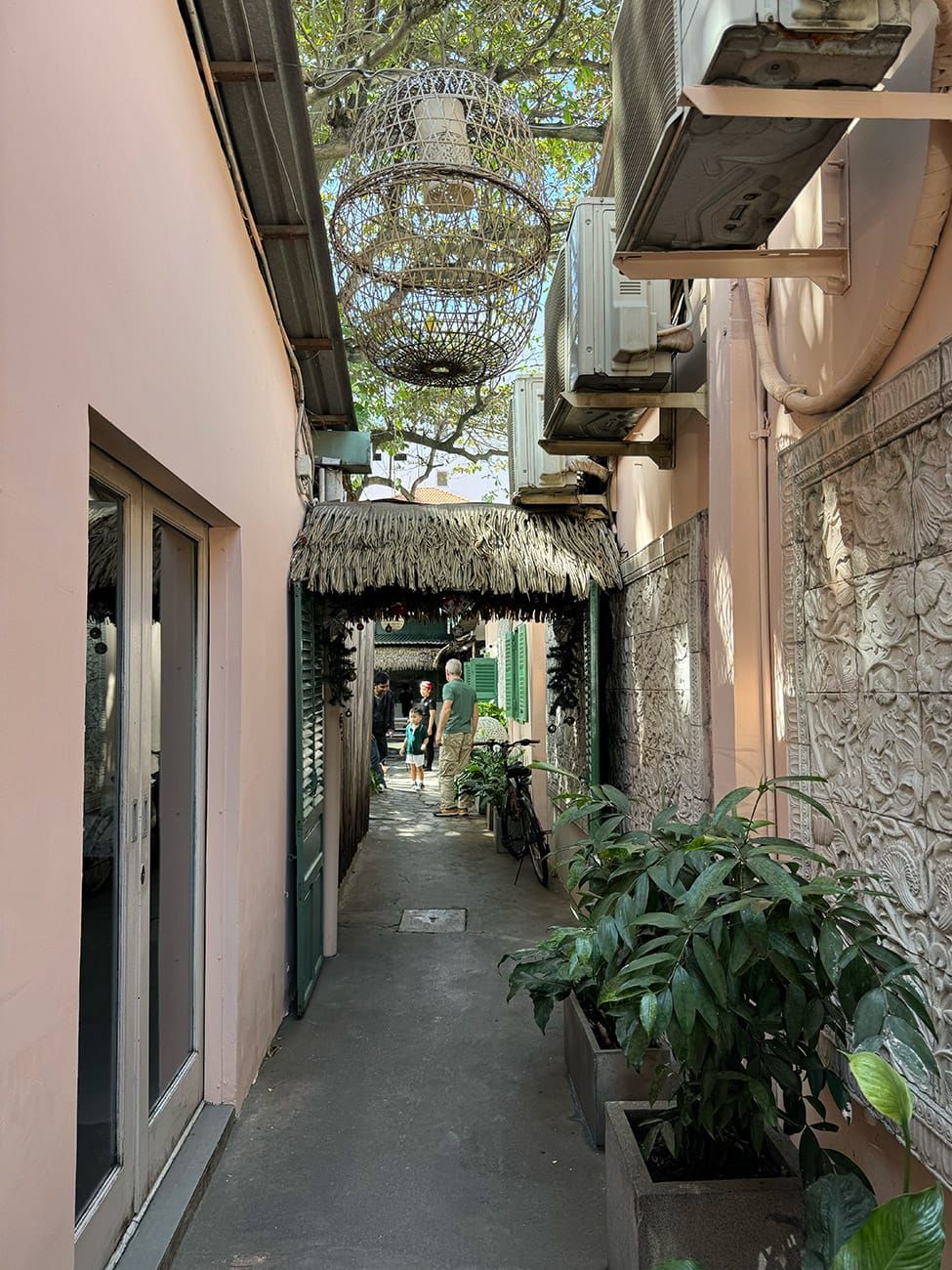 Sau đó là hàng hiên dài dưới mái lá, kiểu chúng ta hay bắt gặp trong các bộ phim về Đông Dương...