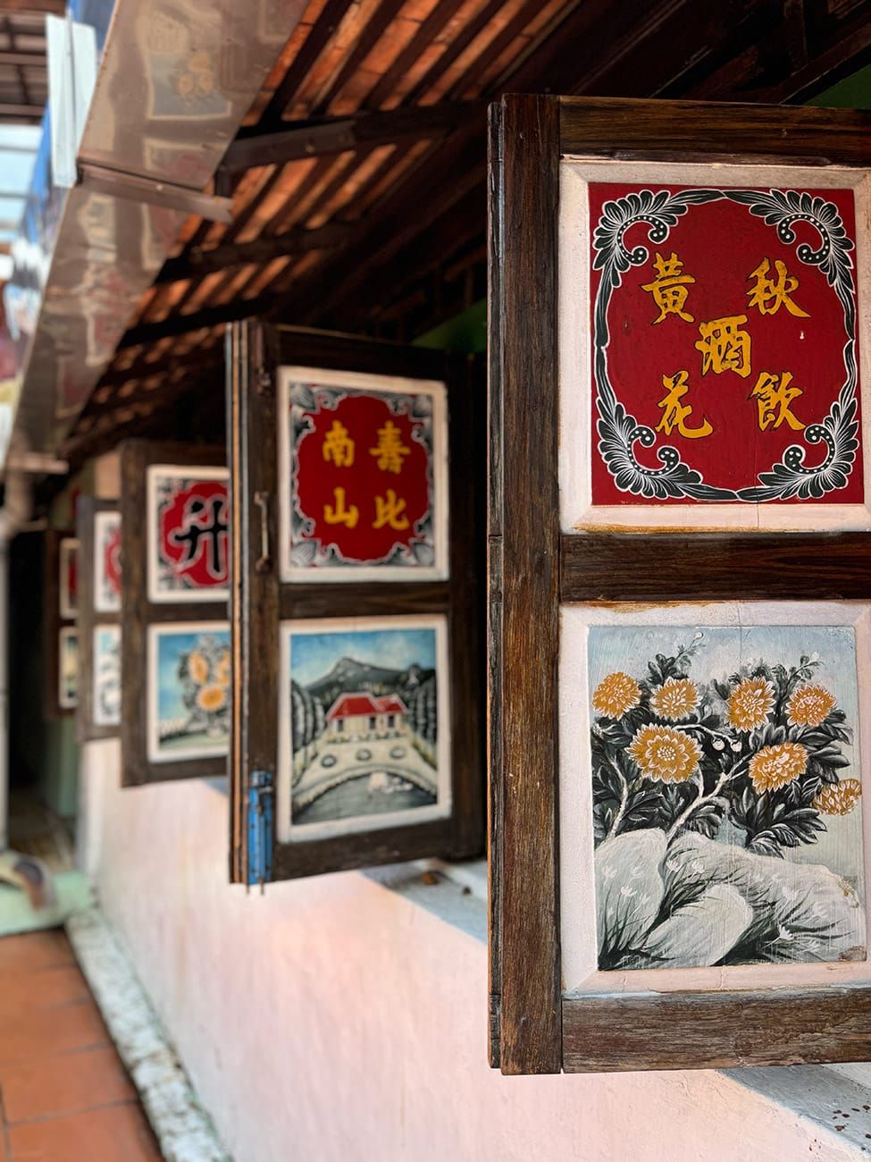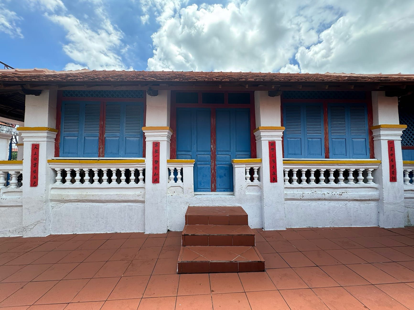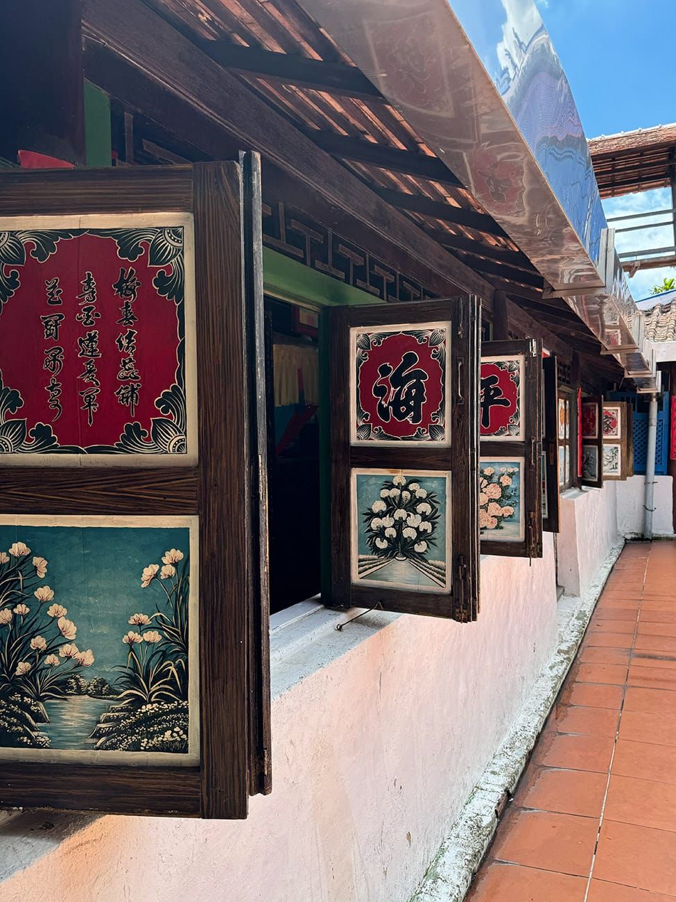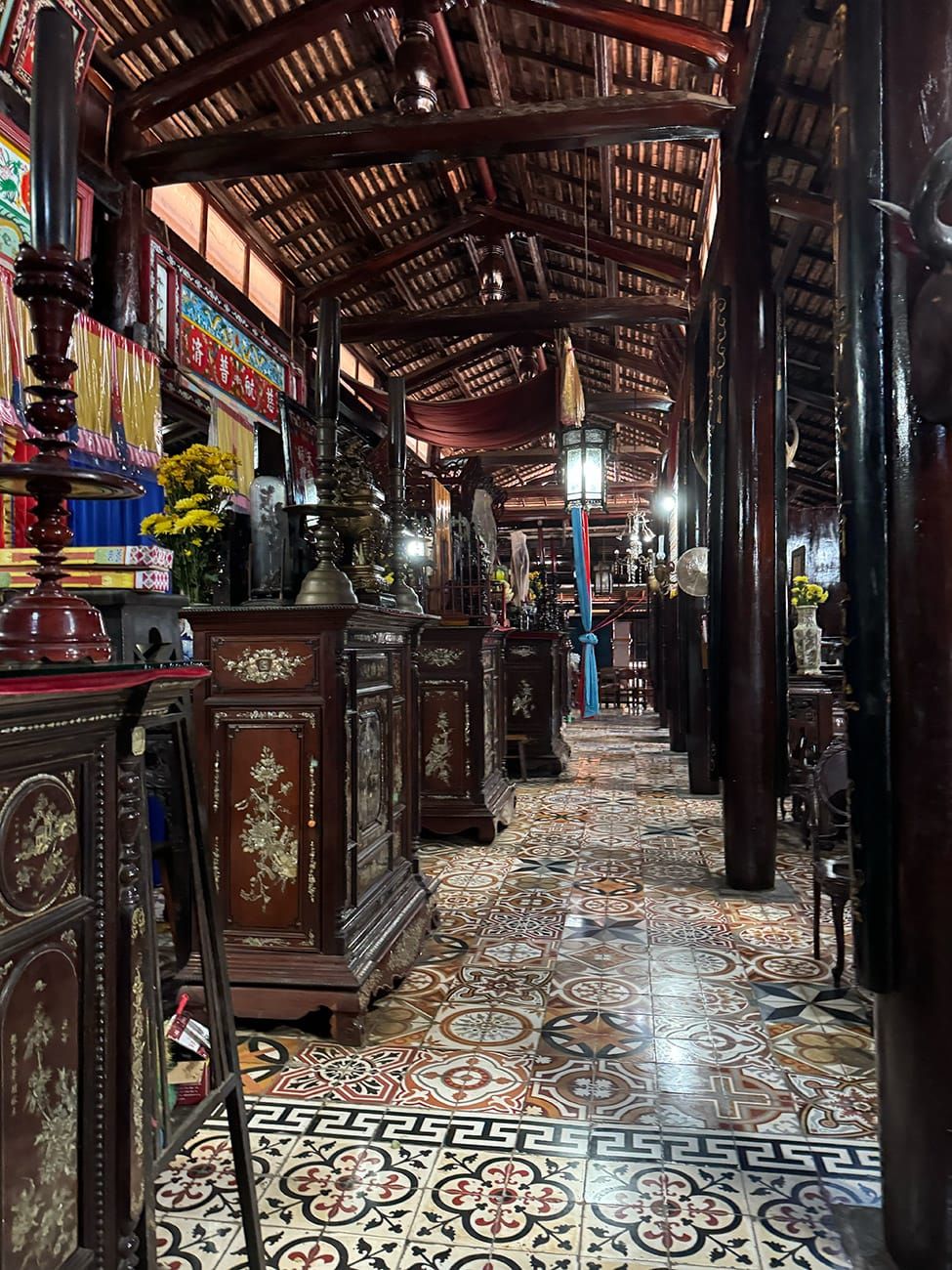 Bây giờ, chúng ta có thể đi xuống phía dưới. Bạn có thể đã quen kiến trúc Việt Nam hoặc Trung Hoa với kiểu điêu khắc rồng phụng, mai lan cúc trúc... Nhưng những người con miền biển này làm mọi thứ khác đi: