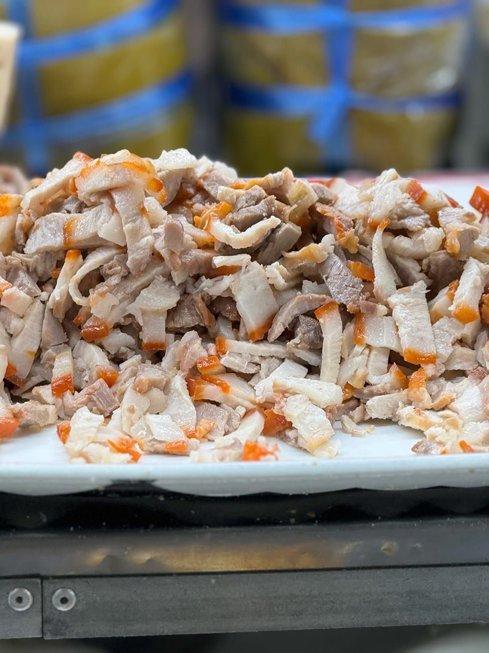Sau khi vượt qua lớp rau dưa, thịt ba chỉ đỉnh cao ở đây sẽ làm bạn tan chảy. Vị mằn mặn đậm đà, chút béo vừa phải của lớp mỡ ngắn, chút dai dẳng của lớp da... Lúc này, quả thật có chút lăn tăn nhẹ: tại sao cô Sáu Lẹ không cho thêm tí thịt nữa? Nhưng bánh mì ở đây là vậy, cân bằng tất cả trong lòng tham của chúng ta.