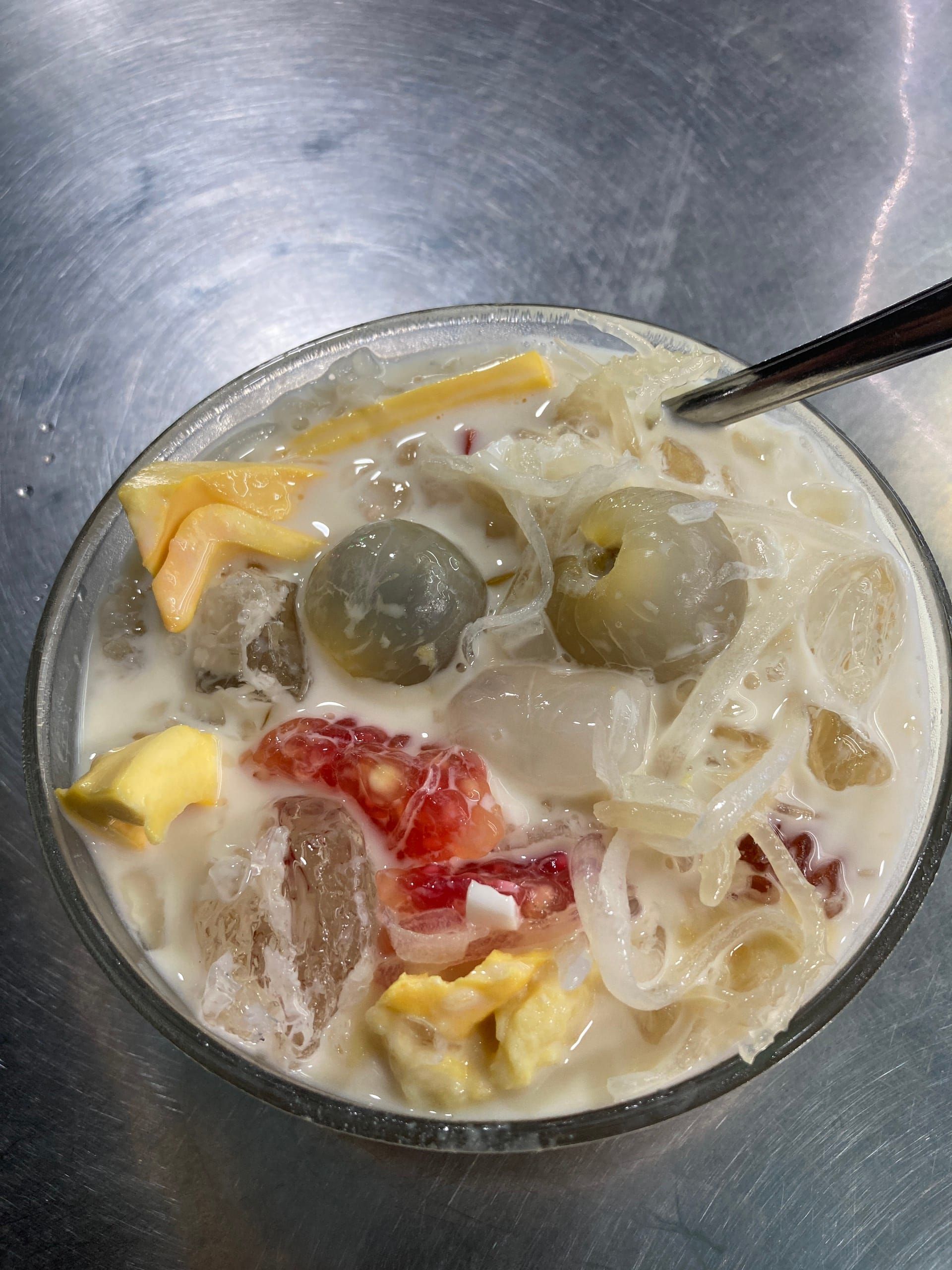 Món chè khúc bạch này đẹp và rõ ràng. Nhưng bạn vẫn nên thử bánh flan mờ ảo đằng xa 😄