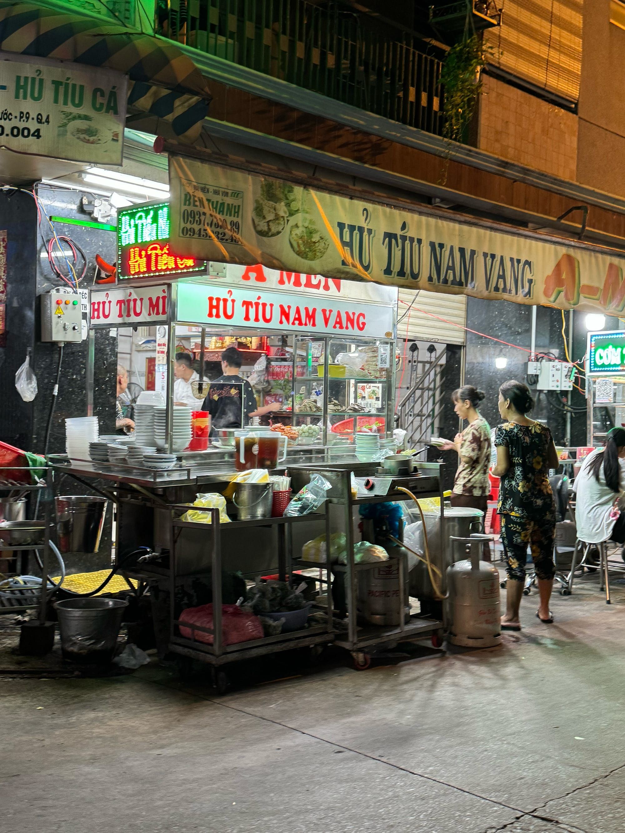 Chỉ trong một đoạn ngắn từ Hoàng Diệu ra đến Vĩnh Khánh, qua rất nhiều góc ngã tư, mỗi góc lại là một quán nhỏ khác nhau. Sloth chọn khu vực này để nói đến bởi vì ở đây chỉ có ẩm thực truyền thống đặc trưng: hủ tiếu, bún mắm, bún bò, ốc… Bạn hoàn toàn không thể thấy bánh đồng xu, bánh bạch tuộc, xiên que… Những gì trước mắt bạn rất nguyên bản.