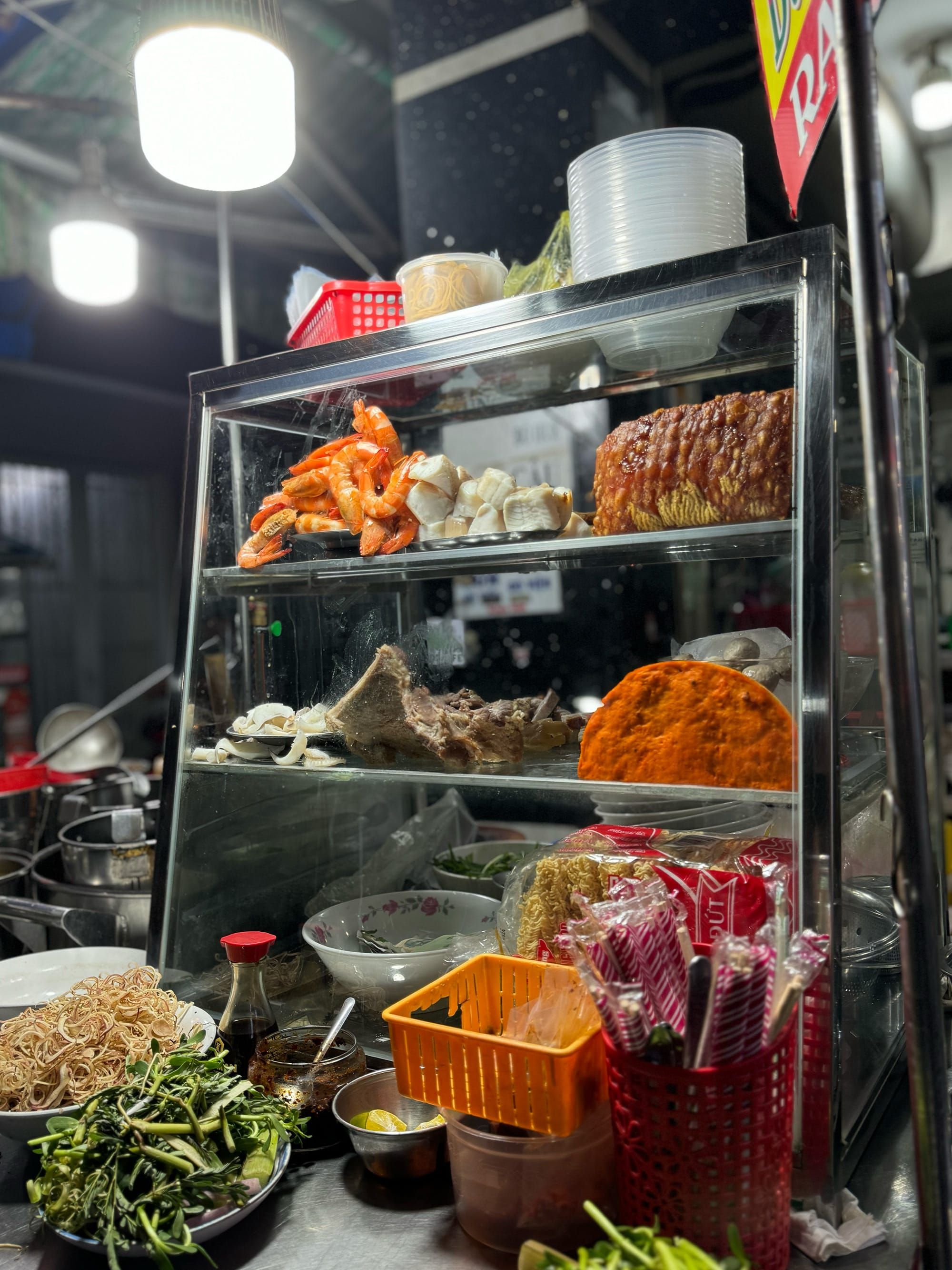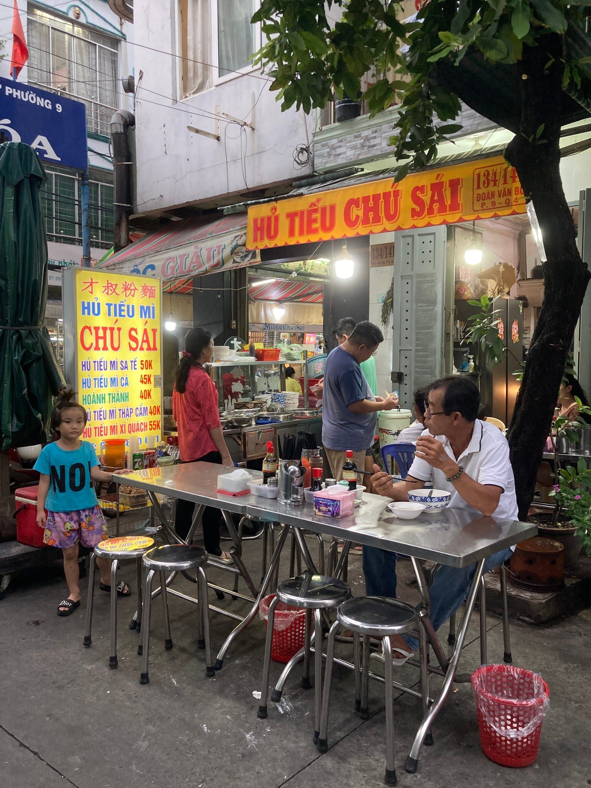 Mỗi quán có một đặc trưng riêng, như của chú Sái chẳng hạn. Hủ tiếu sợi lớn kiểu của người Hẹ, nước dùng đậm đà với hương vị gãy gọn, không kéo dài như phong cách Nam Vang.