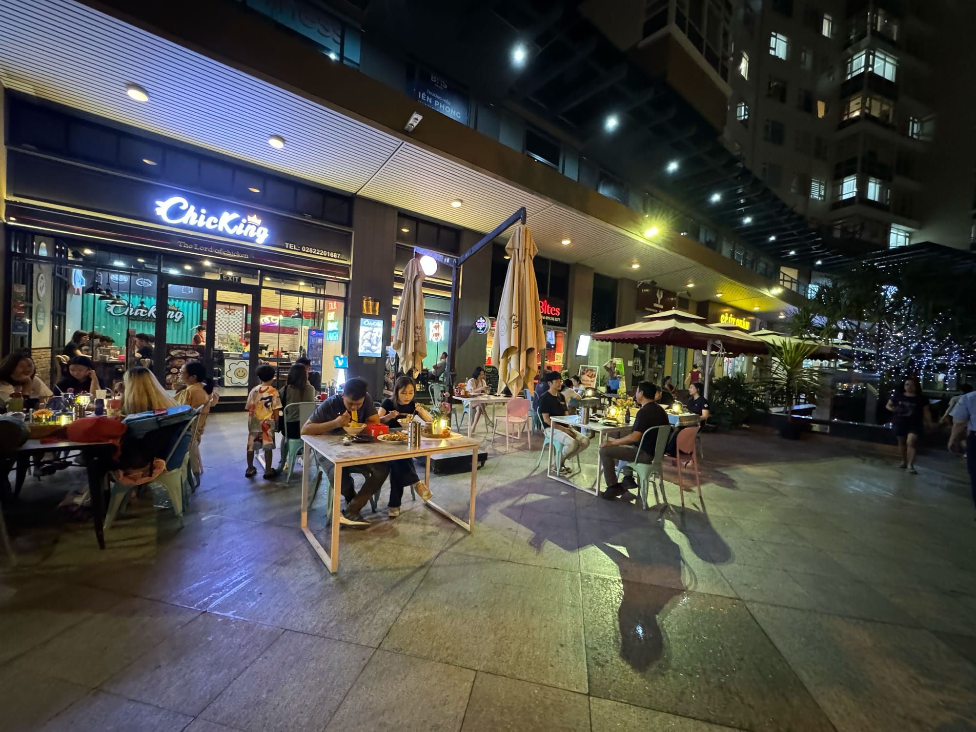 Khi trời bắt đầu tối dần, lúc này bạn có thể dạo quanh các dãy hành lang dài qua các khu ẩm thực đa dạng.