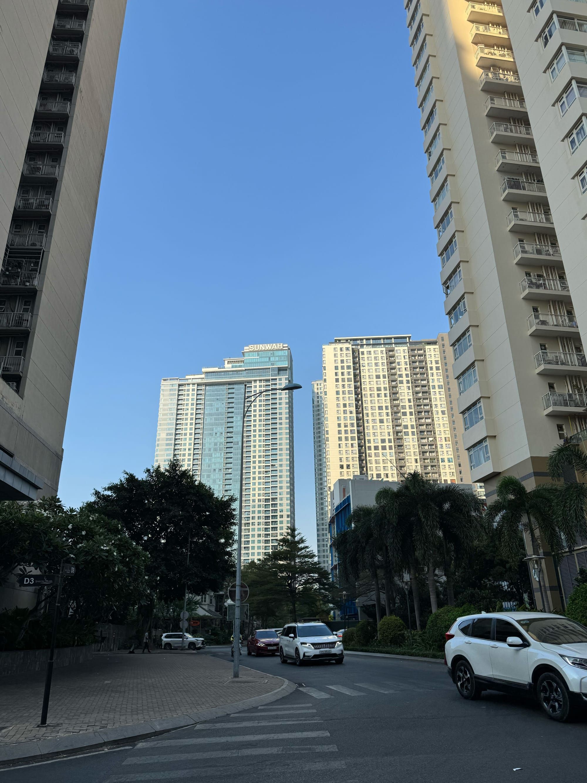 Đây là Tiểu khu Saigon Pearl. Đi trong tiểu khu này cho bạn cảm giác khá giống Singapore, nơi mọi thứ tươm tất nhưng vẫn đầy đủ cây xanh. Tất cả đều hiện đại, mới mẻ, không có những ngôi nhà cũ theo kiến trúc Pháp, Hoa, Việt Nam truyền thống... Tuy nhiên, không vì thế mà tiểu khu kém hấp dẫn hơn. Hãy đi sâu hơn vào các con đường nội bộ bên trong.
