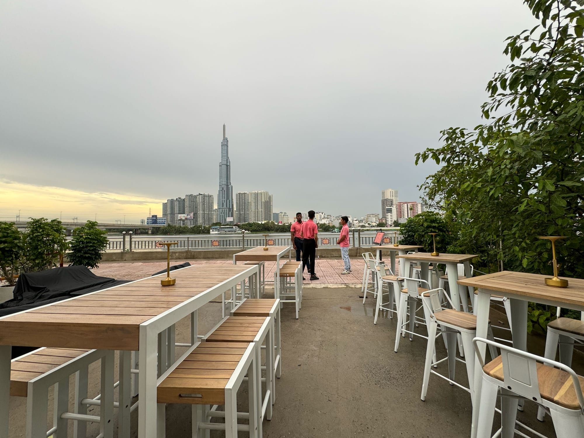 Ở đây có 3 nhà hàng đều hướng ra sông: Satsuma House, Chang Bistro và Baieta. Cả ba đều nhìn thẳng ra sông Sài Gòn mênh mông, nhận ánh sáng hoàng hôn tuyệt đẹp.