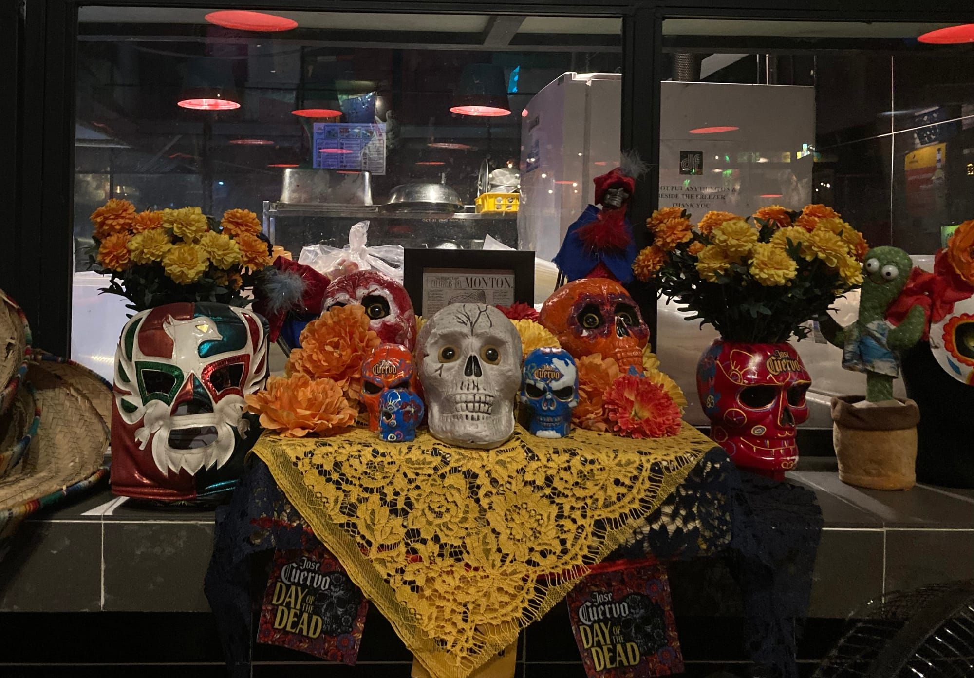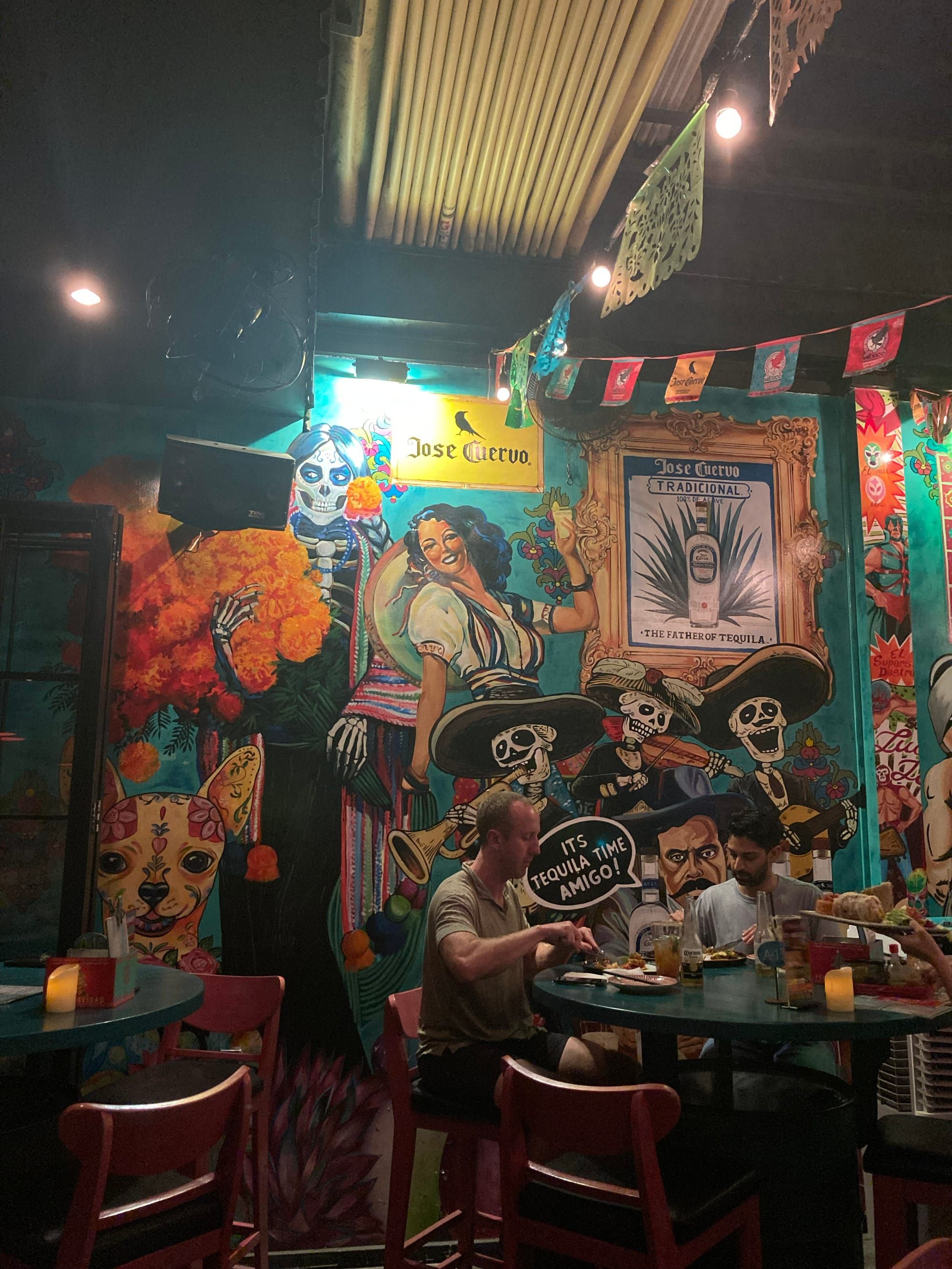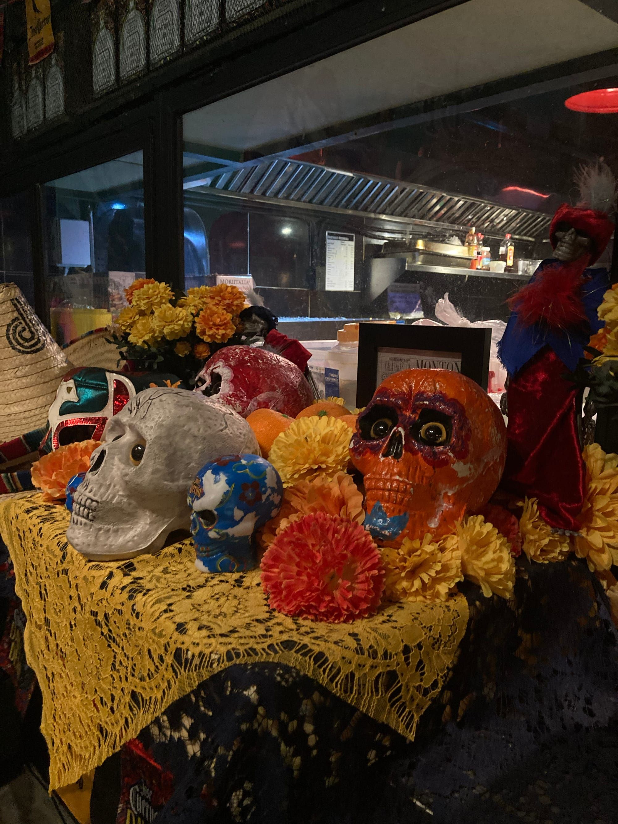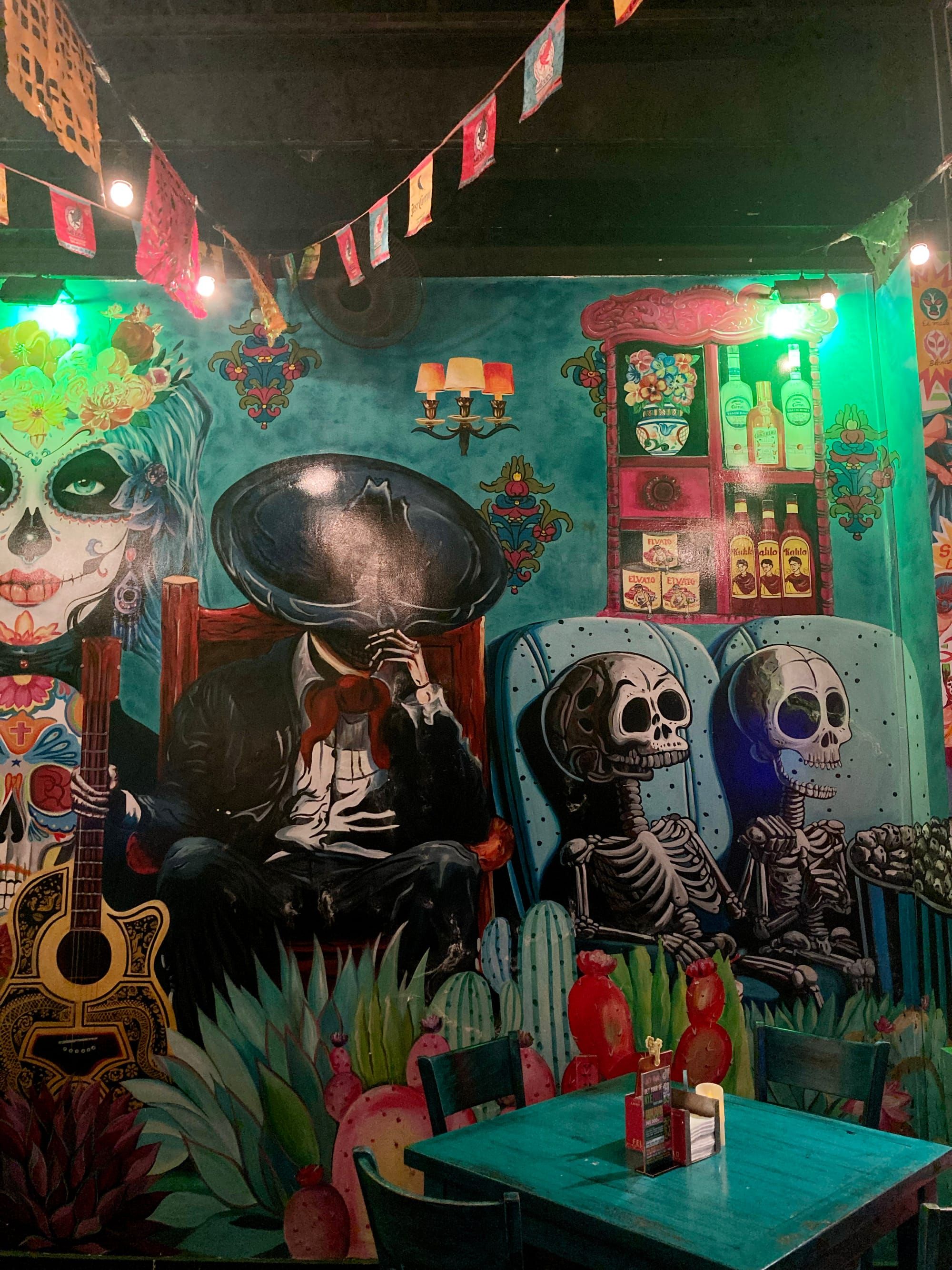 Mọi thứ thoạt đầu có vẻ như ngày thanh minh ở Việt Nam, cũng có bàn thờ (không nhiều dân tộc sử dụng bàn thờ cho những người đã mất nhé) với nhiều hoa cúc vạn thọ, thức ăn… nhưng tổng thể sẽ mang lại nhiều trải nghiệm và gần với không khí lễ hội hơn. Tất cả phản ánh đúng nguyên bản ở Districh Federal, quán bar của cái chết vui vẻ Mexico.