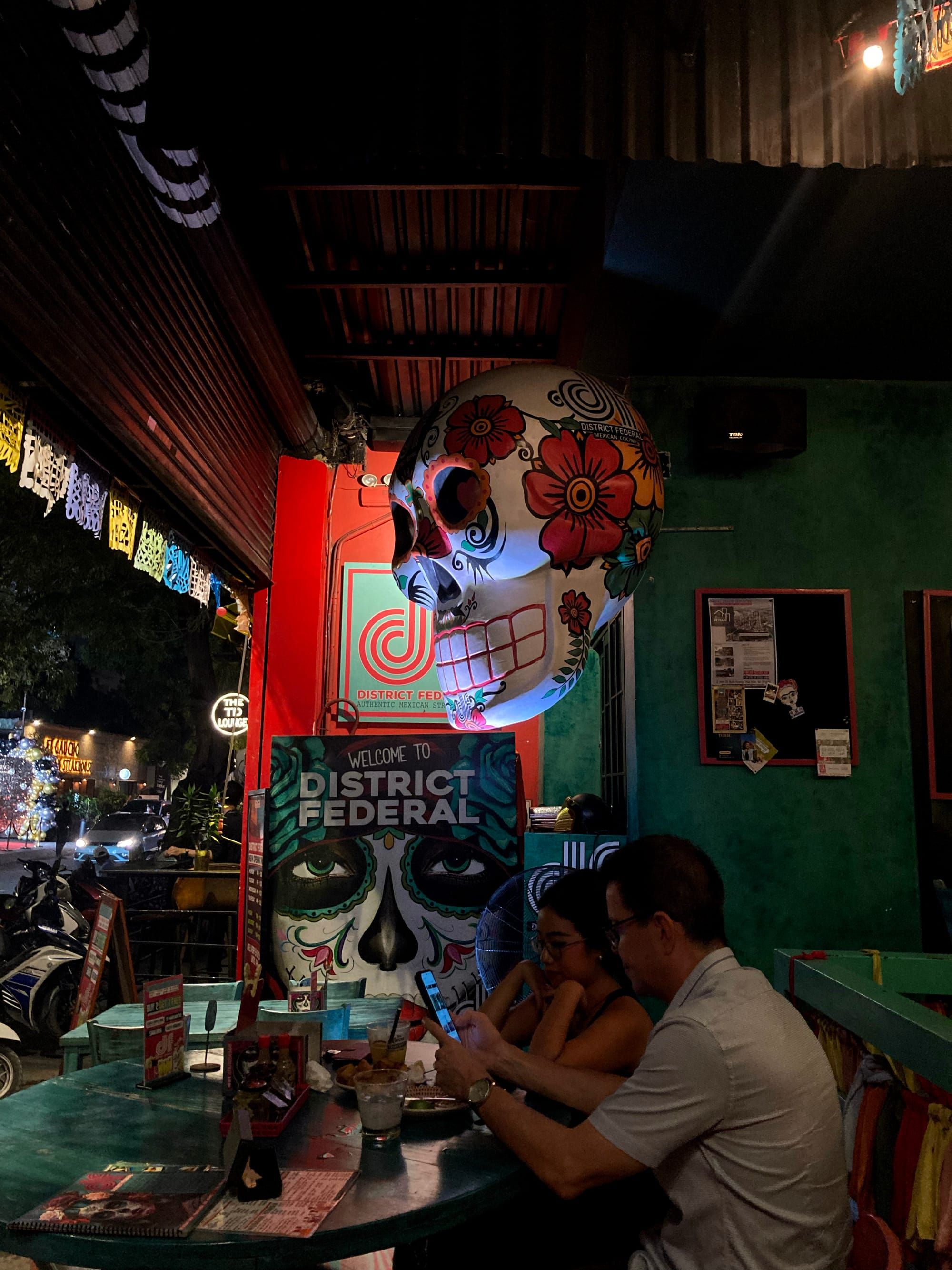 District Federal có không gian thoáng, màu sắc rực rỡ nhưng sẽ không làm bạn khó chịu. Ngược lại, từng góc tường đều có artwork đa dạng, đẹp mắt để bạn có thể tìm hiểu về hàm ý của chúng. Tuy vậy, chủ đề vẫn xoay quanh cái chết và vẻ đẹp của cuộc sống.