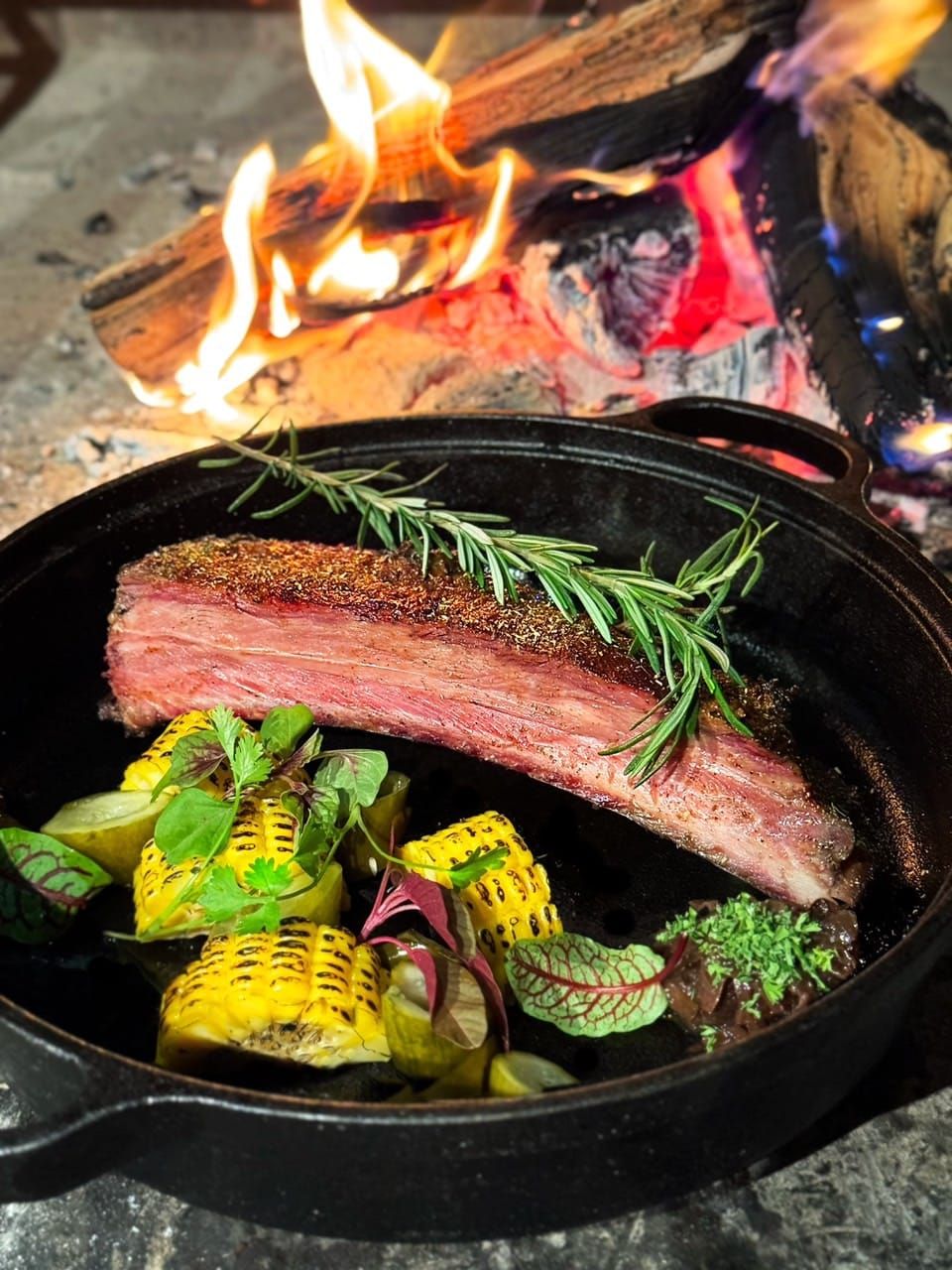 Điều tuyệt vời nhất của các món ăn bạn có thể tìm thấy ở đây chính là độ cháy, mùi gỗ, màu nâu giòn, vị đậm đà xen lẫn chút đắng nhẹ đâu đó. Tất cả đều được đi qua khói thoang thoảng, từ món sườn nướng mắc khén, cá thu Na Uy, vẹm xanh sốt kem hay tùy bò, cá hồi…