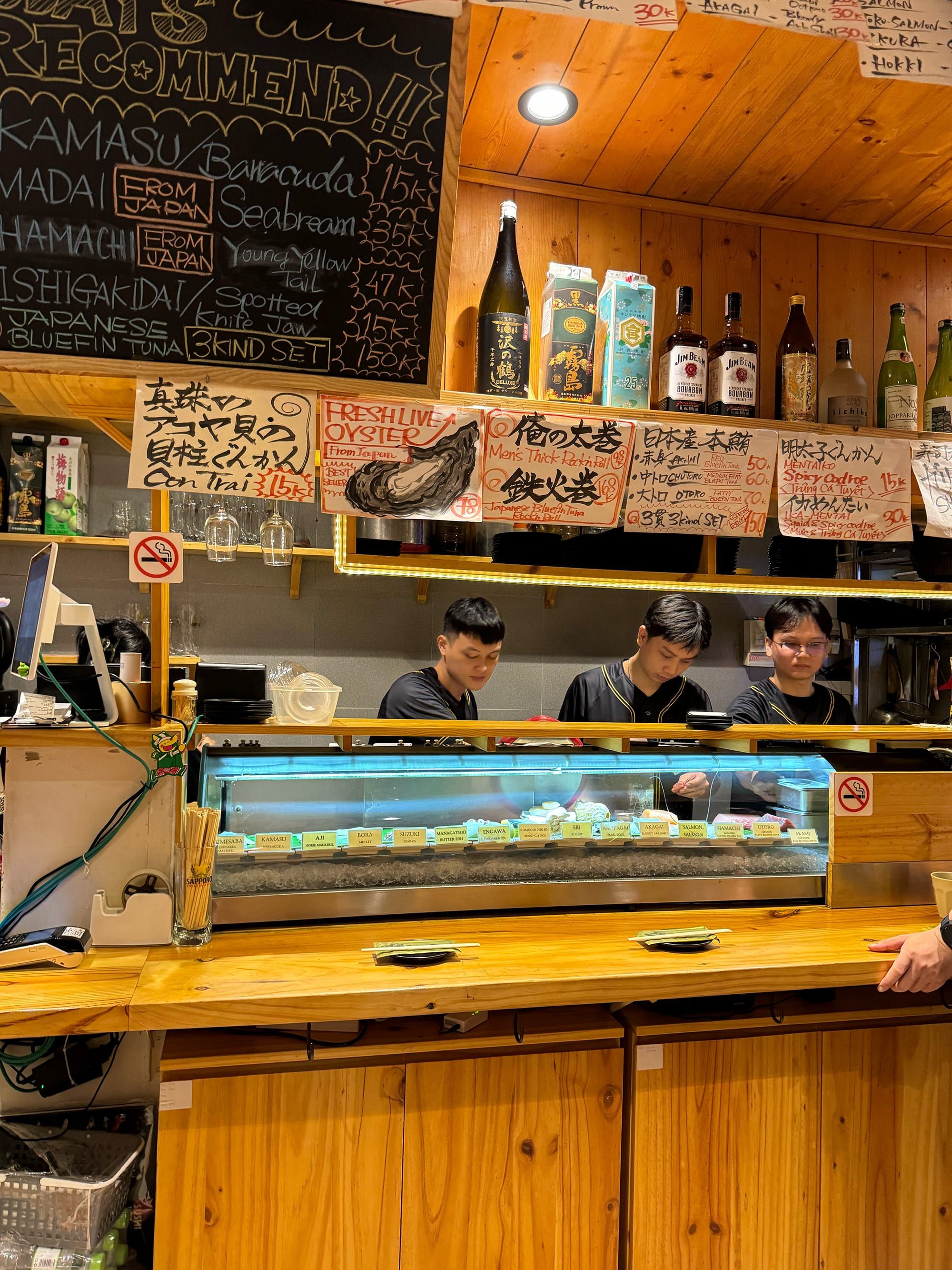 Có nhiều lý do tại sao ăn tại quầy nhà hàng là một ý tưởng tuyệt vời. Thứ nhất, chúng rẻ hơn và nhanh hơn các nhà hàng sushi thông thường. Thứ hai, với tốc độ quay vòng của khách rất nhanh, sushi luôn được chế biến tươi hơn, đảm bảo món ăn ngon nhất có thể. Thứ ba, việc không gian quá chật hẹp đến nỗi không thể đặt ghế lại vô tình làm cho không khí ẩm thực sôi động, vui vẻ khác thường.