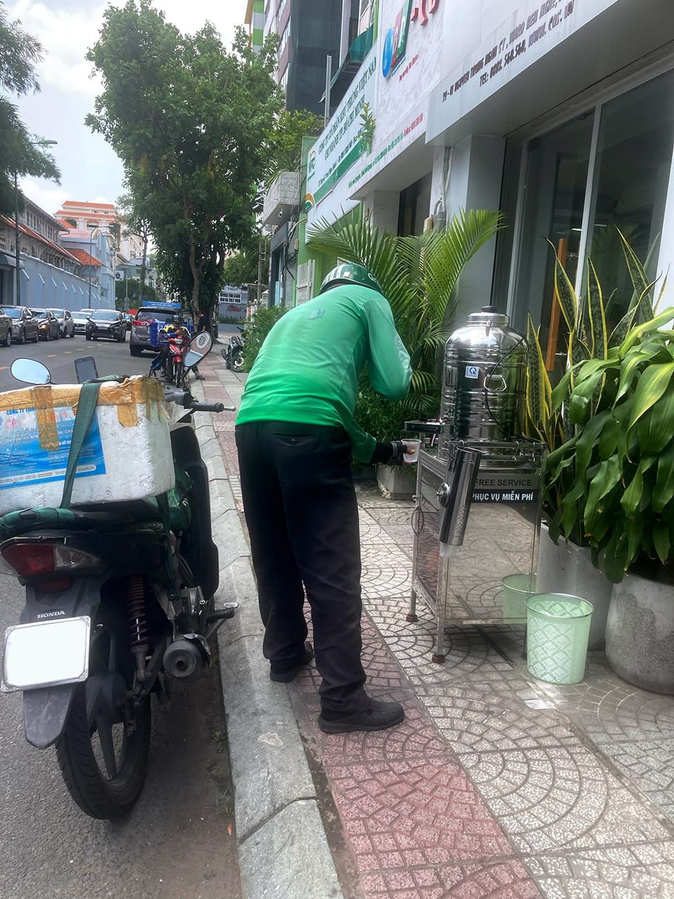 Cây táo đường Nguyễn Trung Ngạn này luôn nở ra nước mát lạnh cho anh em shipper, ly nhựa vệ sinh dùng một lần, thùng rác kế bên, lại còn có bánh mì miễn phí nữa.