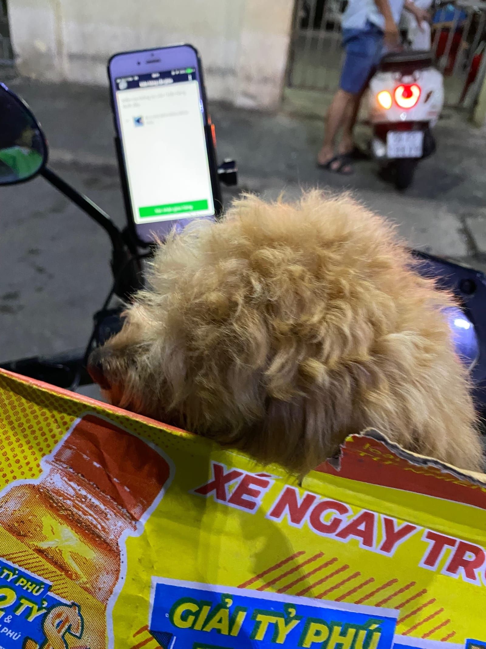 22.10.2021: Ship em chó này từ Suối Tiên ra Ga Sài Gòn. Ban đầu nó không thò đầu ra được như thế này. Chạy được lúc em la hét dữ quá, mọi người nhìn tưởng trộm chó nên phải khoét cái lỗ cho ngó đường. Vậy là im bặt, cái lưỡi bay bay ra sau khoái trí.