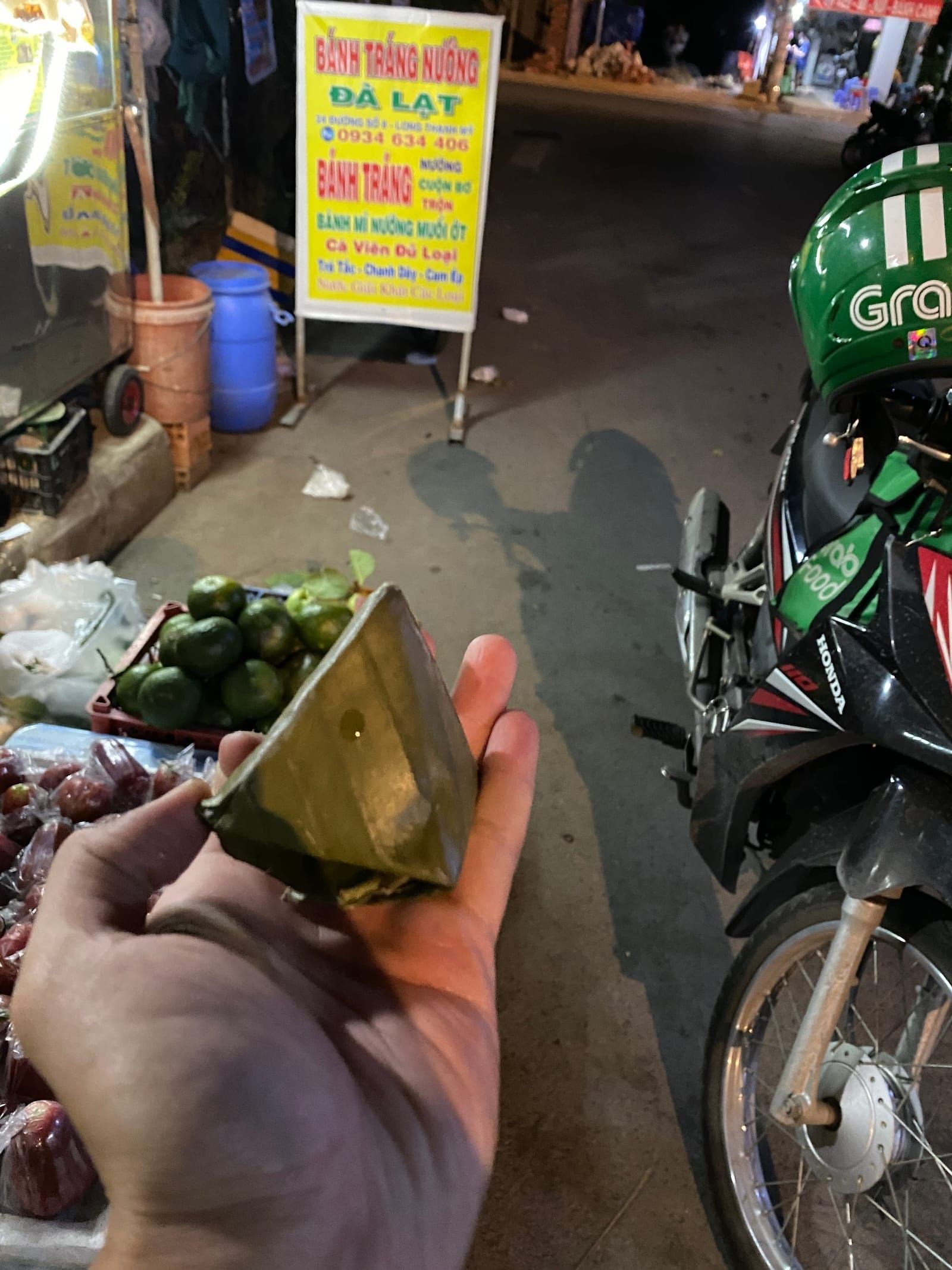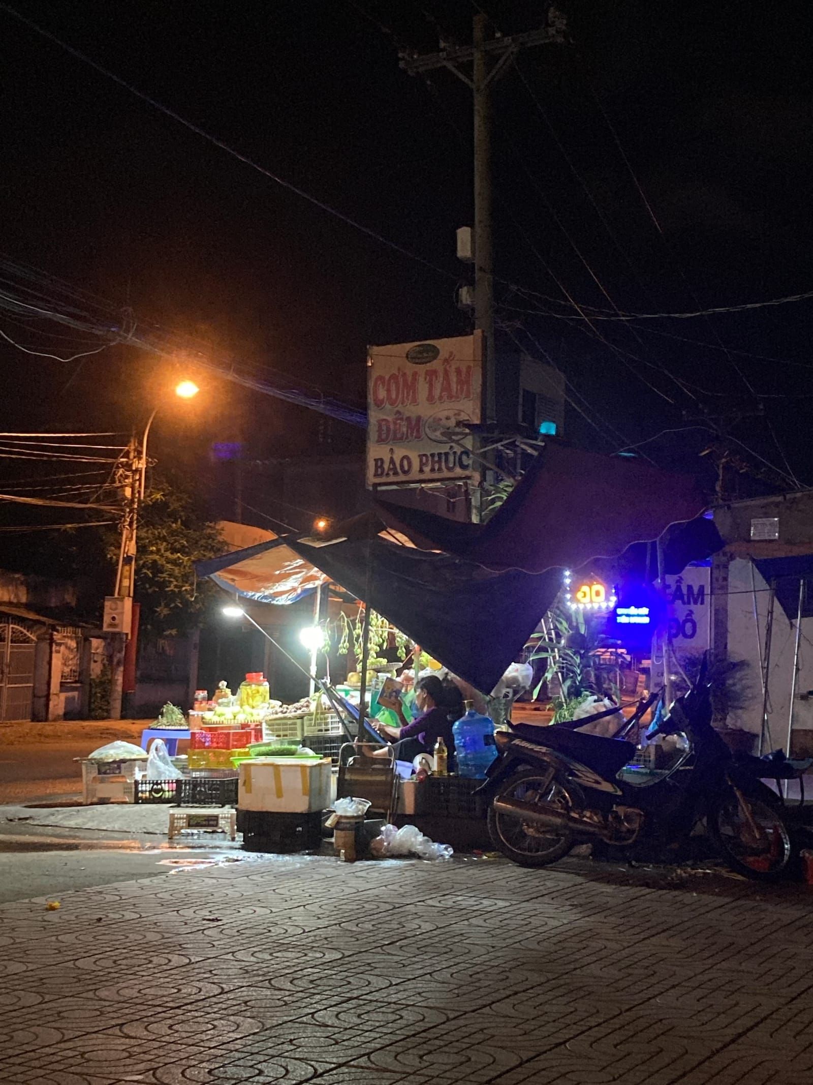 30.04.2022: Chị này tên Tám, sống một mình, chị thuê góc nhỏ đây vừa buôn bán trái cây vừa khéo léo sắp xếp thành nơi để ở. Lúc này đôi bàn tay to khác thường thoăn thoắt gọt cóc rồi đem đi ngâm chuẩn bị cho ngày mai. Chị cho vài trái cóc chấm muối ăn chơi. Rồi chị hồn nhiên nói:” Tám thích hát lắm, cứ mỗi ngày Tám đều hát tặng bạn bè trên Zalo một bài. Mà Tám mới mất điện thoại, để bán vài hôm nữa có tiền mua lại”. Rồi bất ngờ Dạ Cổ Hoài Lang được cất lên. Nhẹ nhàng, trong trẻo nhưng cũng đầy da diết. Đã quá nửa đêm.