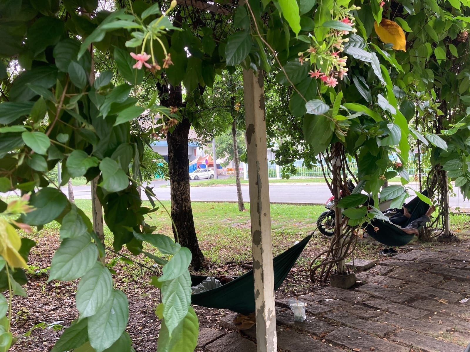 Có chú đồng nghiệp dư cái võng cho mượn mắc nằm nghỉ chơi. Không hiểu sao chú mang tận 2 cái.